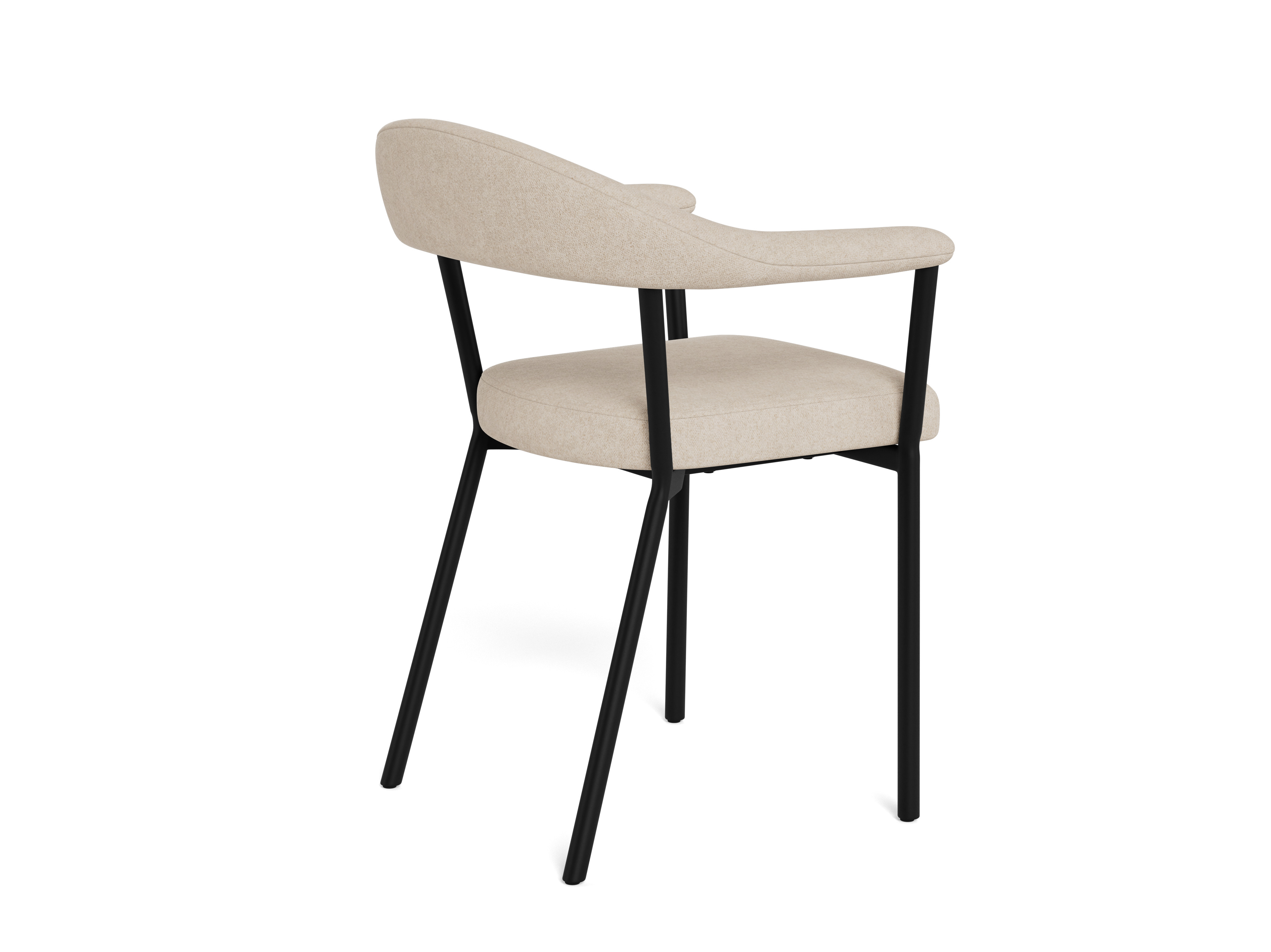 Le pietement stable a quatre pieds en acier thermolaque noir mat assure une grande stabilite et confere a la chaise un look contemporain et minimaliste. Avec ses lignes epurees et ses couleurs neutres, la chaise de salle a manger Vivi s'integre parfaitement dans differents styles d'interieur, du scandinave a l'urbain en passant par le classique.