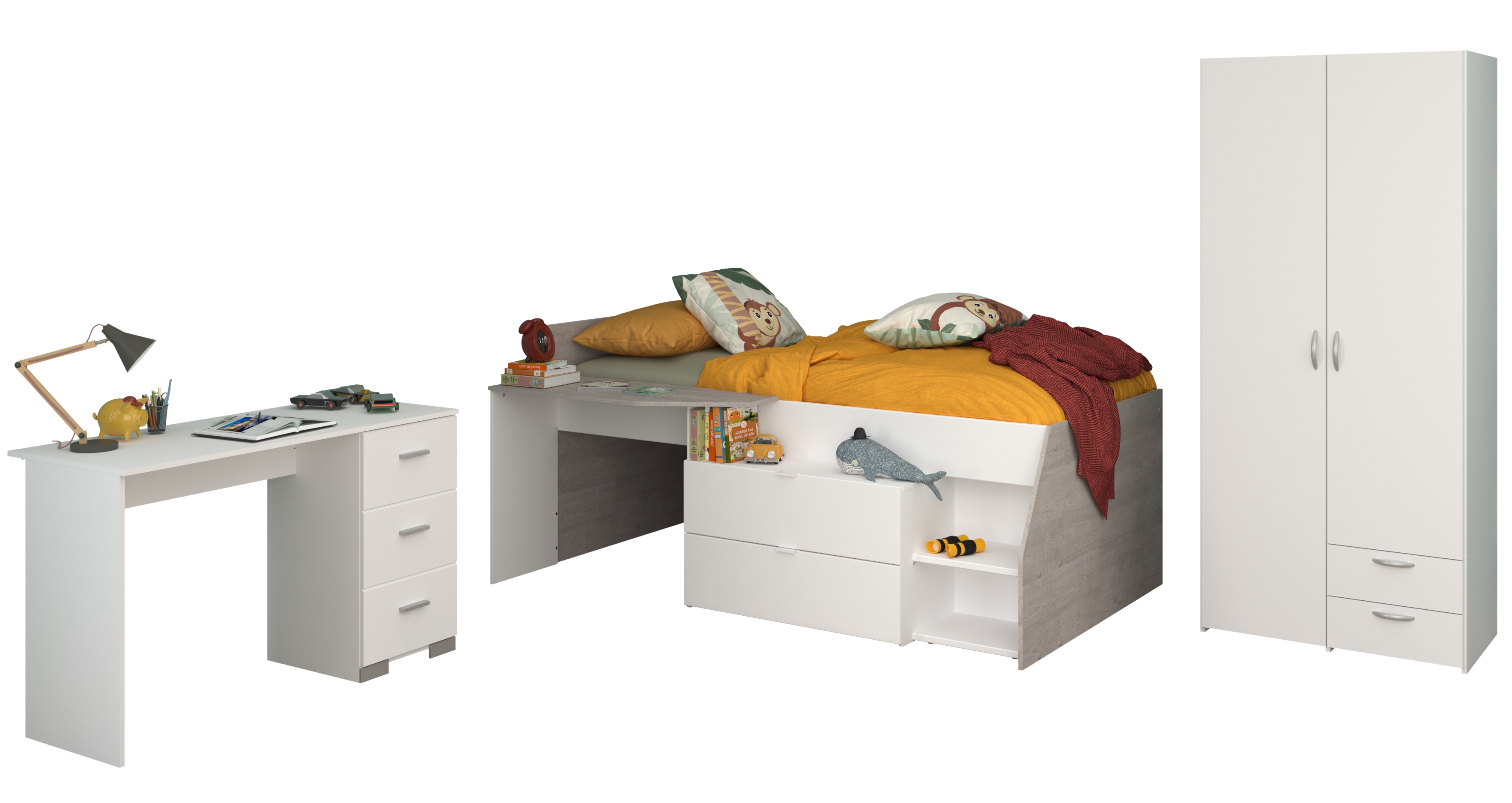 Caisson et façade : 23-ton blanc et décor bois Loft Grey