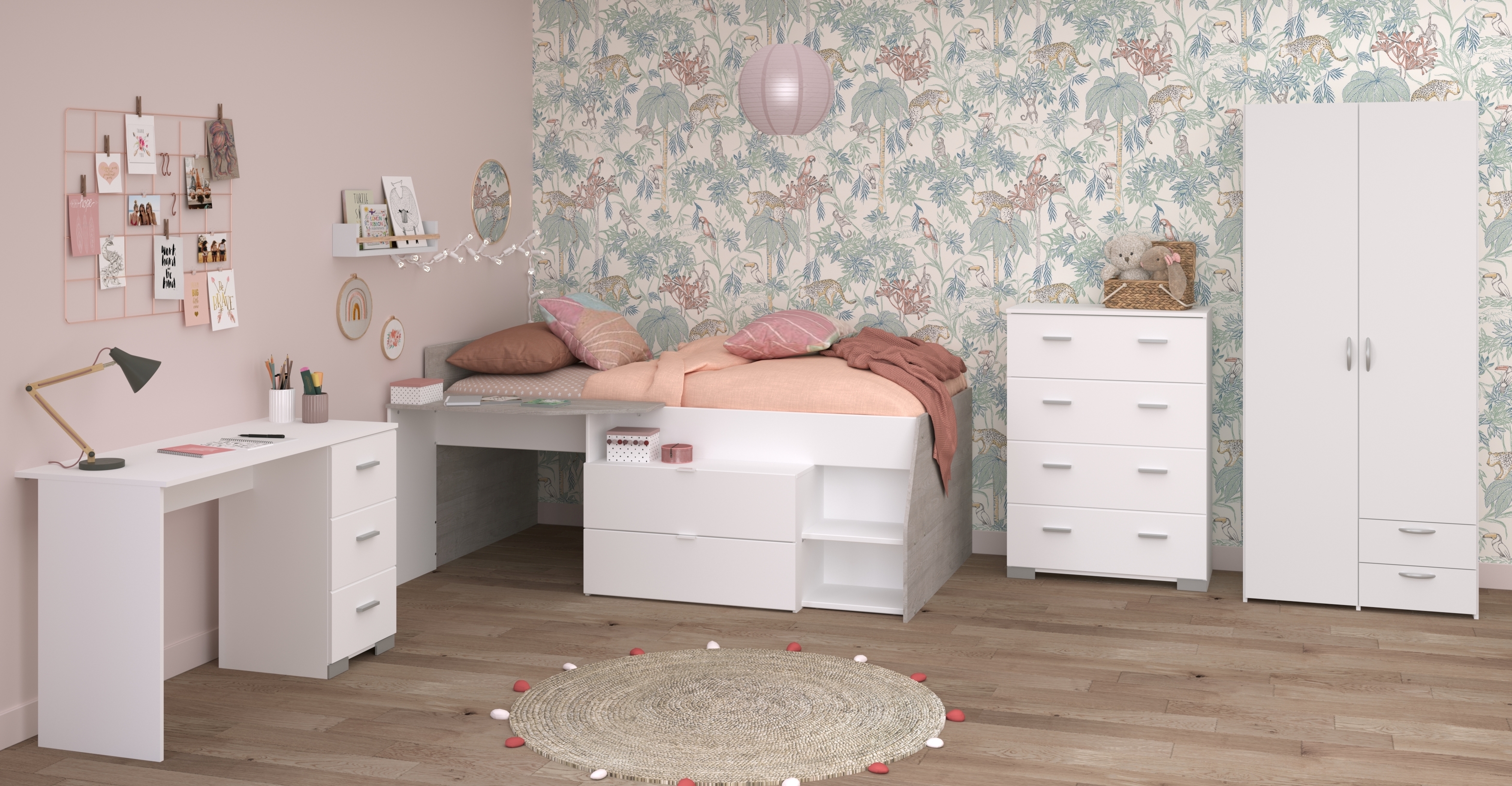 Caisson et façade : 23-ton blanc et décor bois Loft Grey