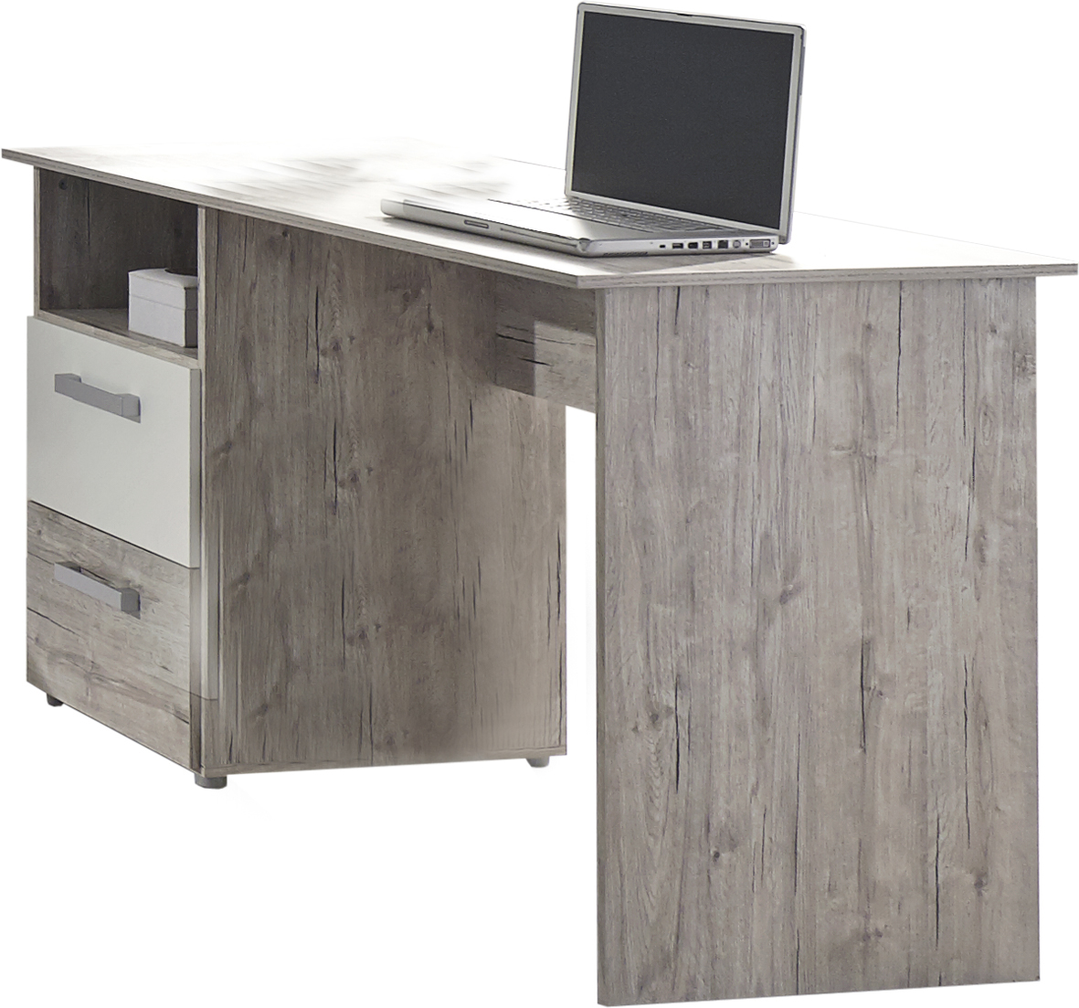 1 bureau avec 1 casier ouvert et 2 tiroirs
