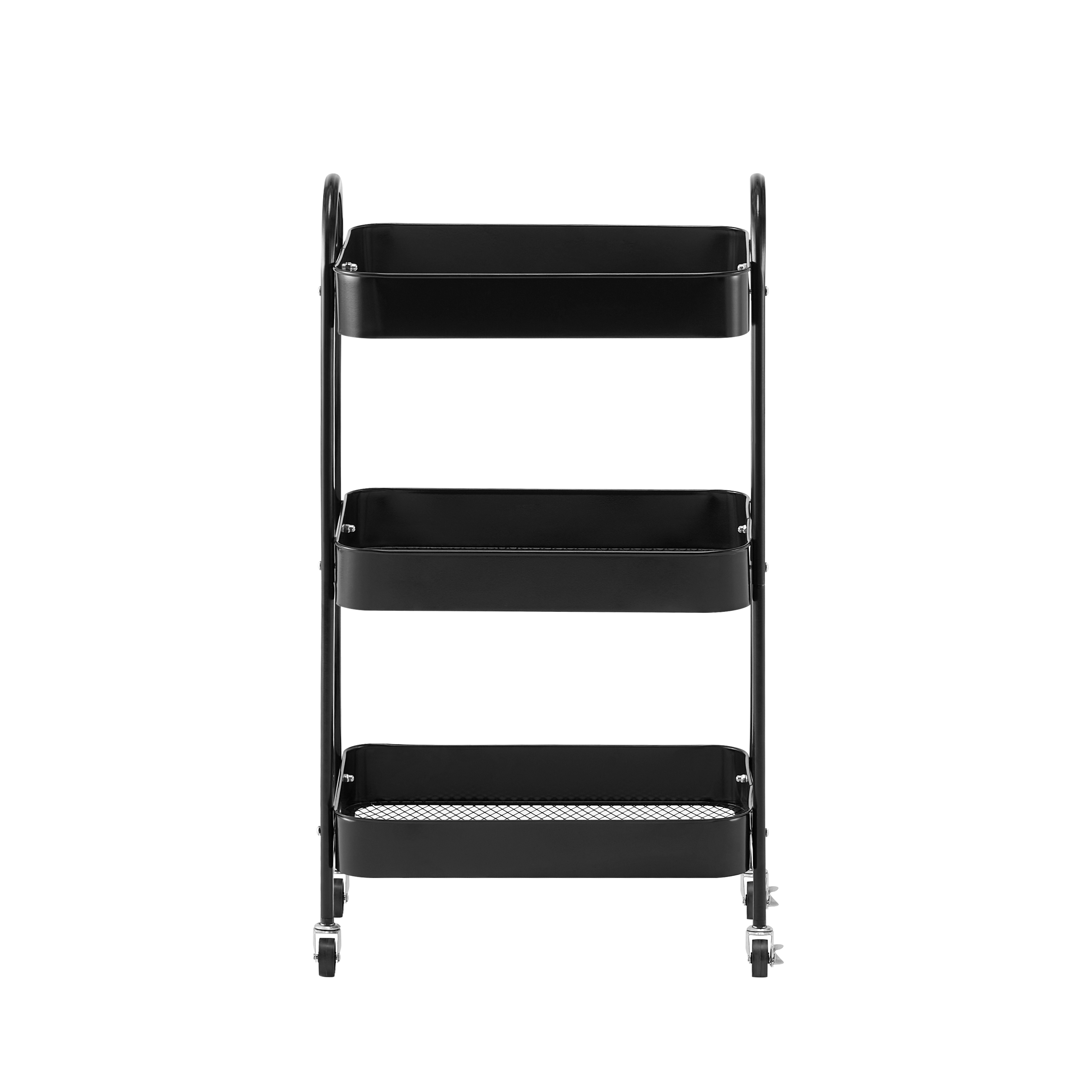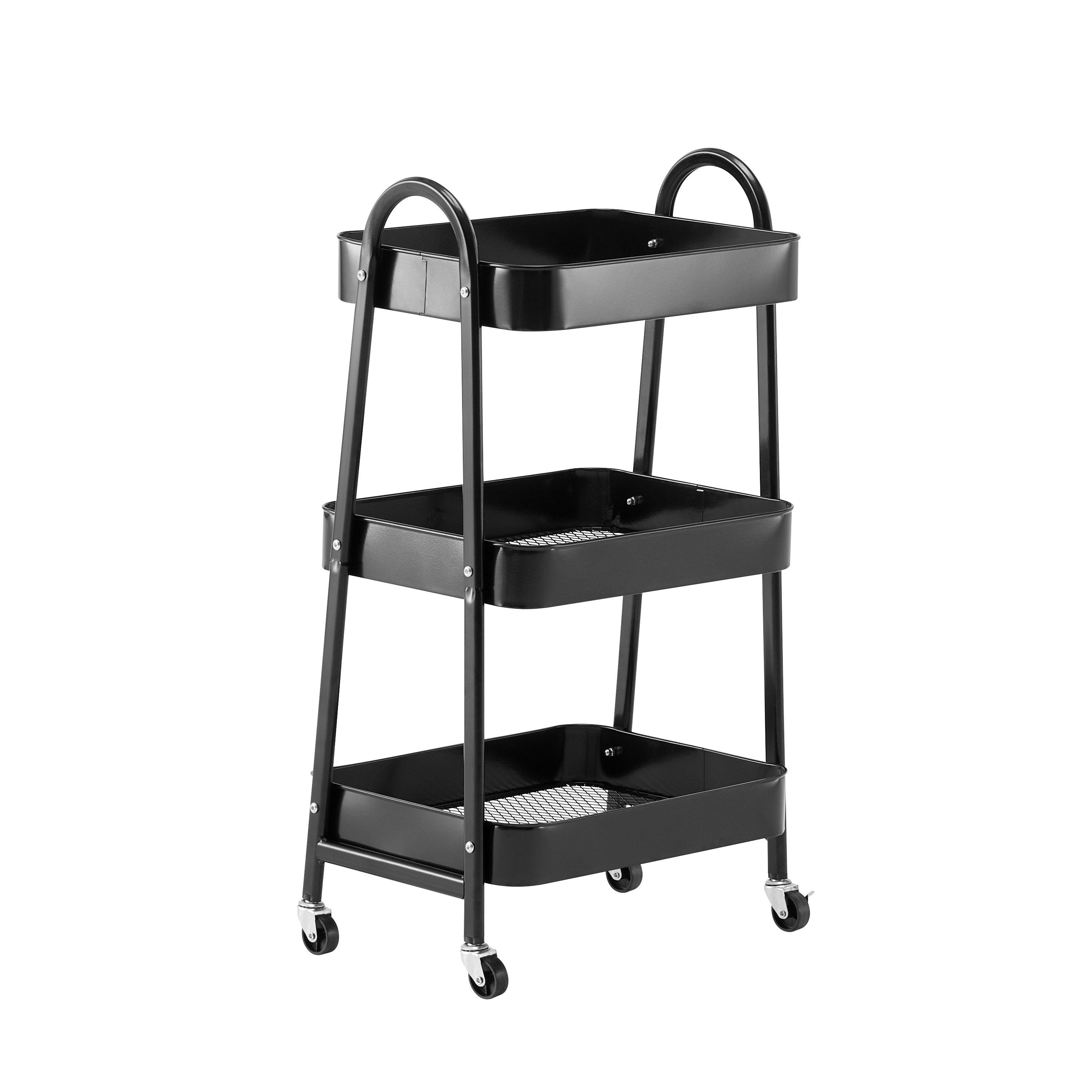 Ce chariot de service compact séduit par son design moderne et ses nombreuses possibilités d'utilisation. Grâce à sa forme élancée, il s'intègre parfaitement dans la cuisine, la salle de bains, le bureau ou le salon et offre un espace de rangement supplémentaire dans les plus petits espaces. Trois étagères stables offrent de la place pour les ustensiles de cuisine, les boissons, les produits d'entretien ou le matériel de travail. Les roulettes maniables permettent de le déplacer facilement, de sorte que le chariot peut toujours être utilisé là où on en a besoin. La construction métallique robuste assure stabilité et durabilité, tandis que la couleur sombre apporte une touche intemporelle et élégante à chaque pièce.