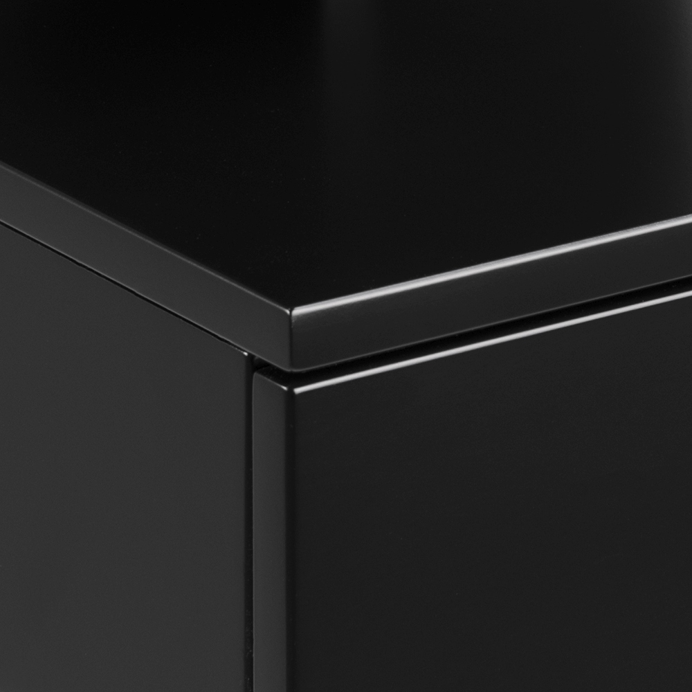 Façade et caisson : MDF (panneau de fibres de bois de densité moyenne) laqué ton noir