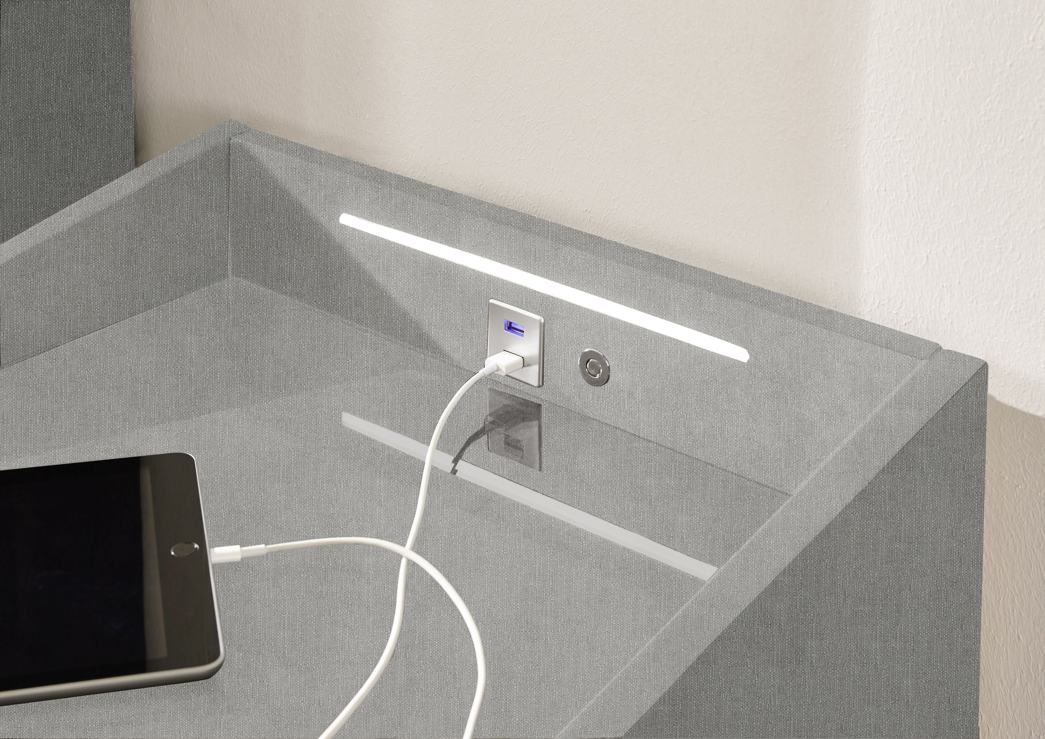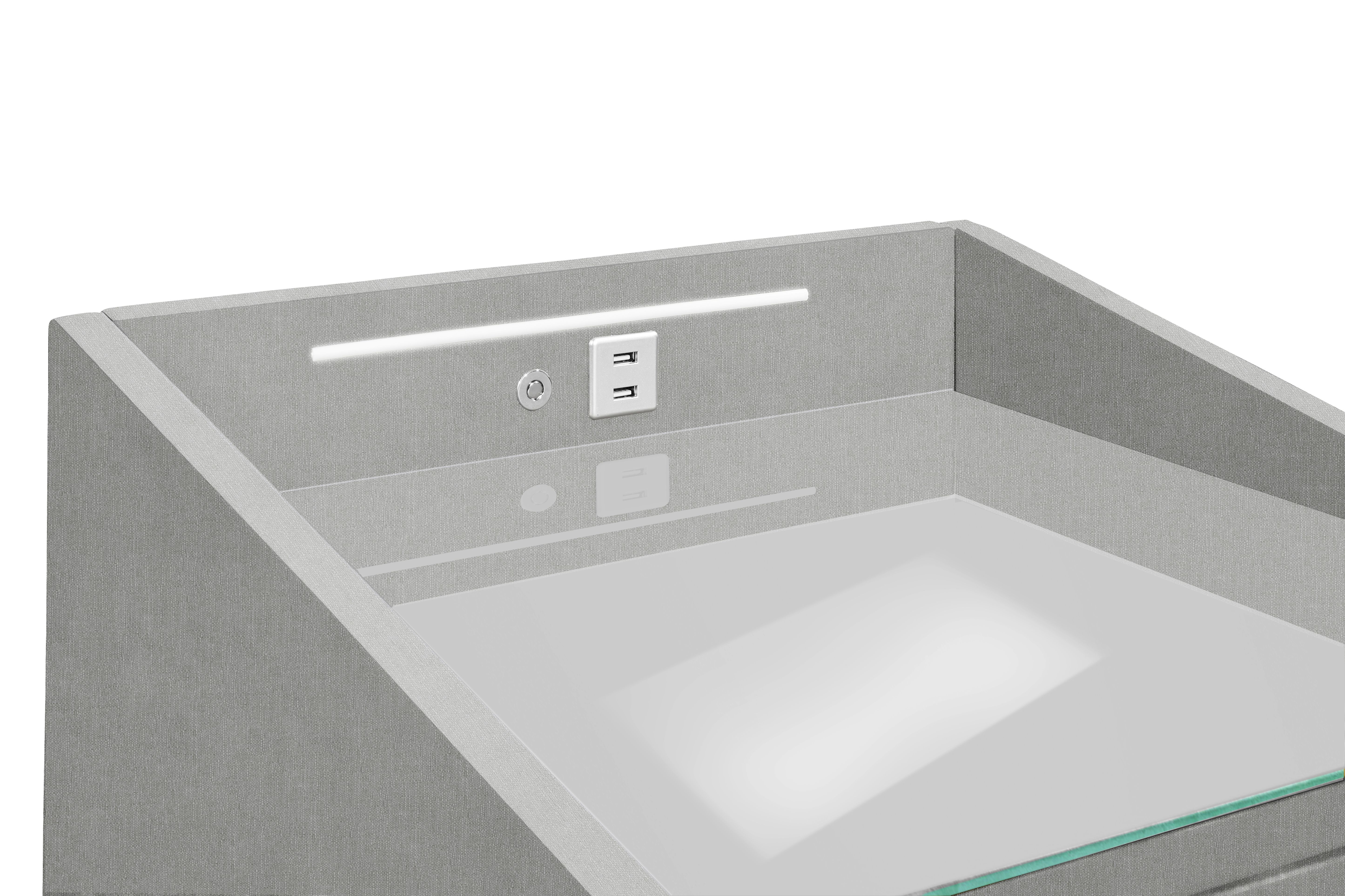 | Ausstattung Kommoden Phono Büro Regal: | Plateau en verre, Tiroirs, avec port USB, incl. éclairage | ||