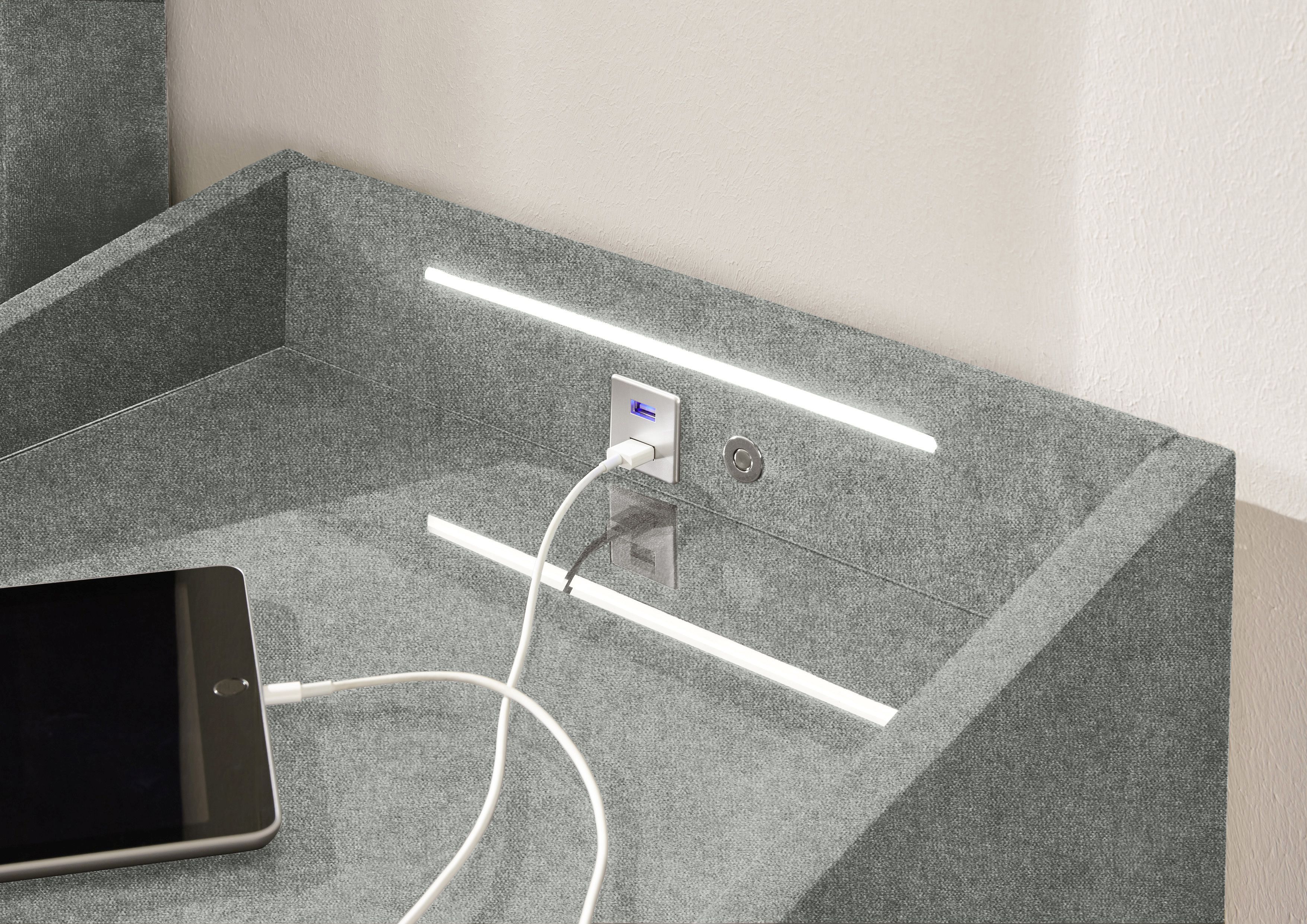 | Ausstattung Kommoden Phono Büro Regal: | Plateau en verre, Tiroirs, avec port USB, incl. éclairage | ||