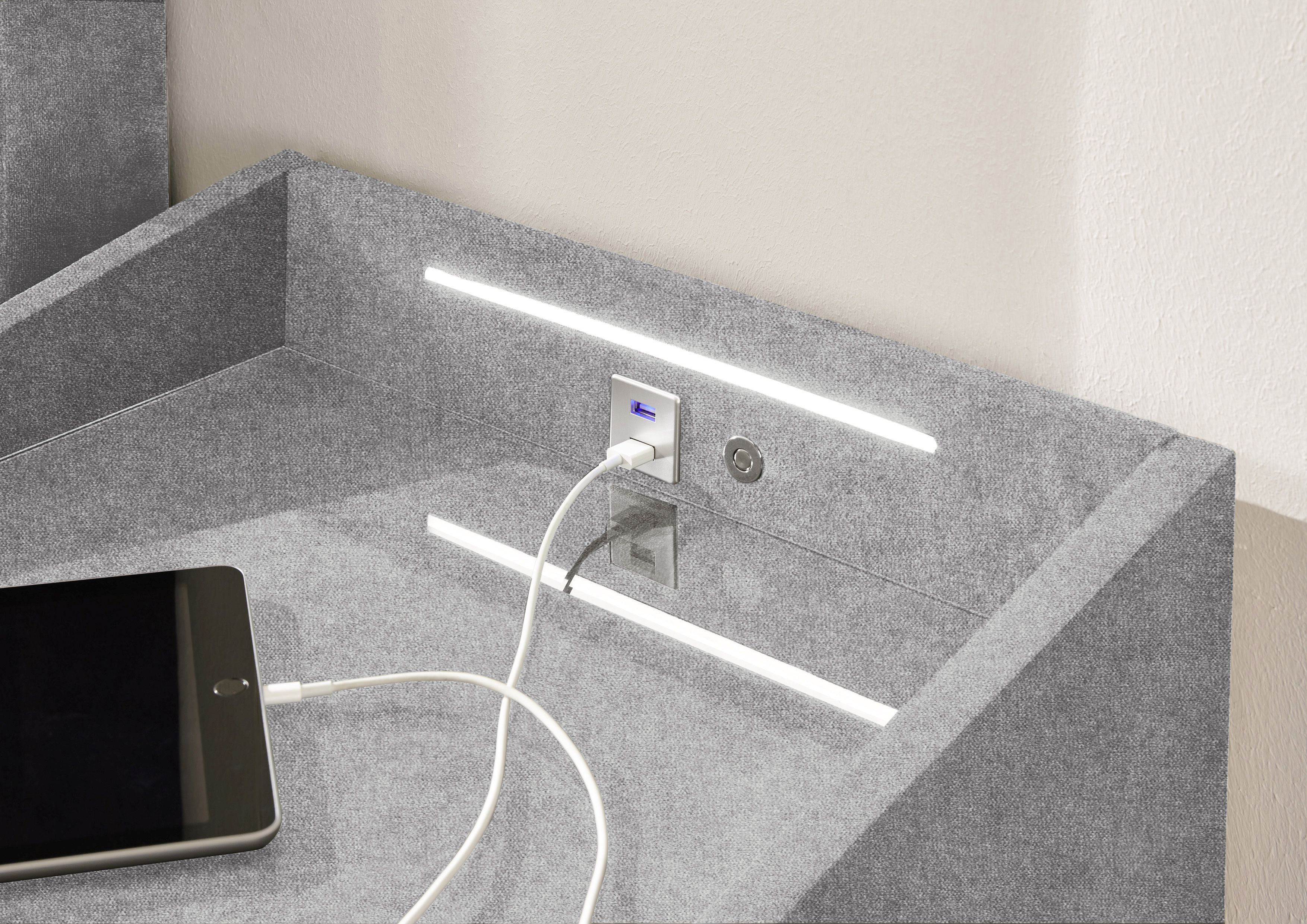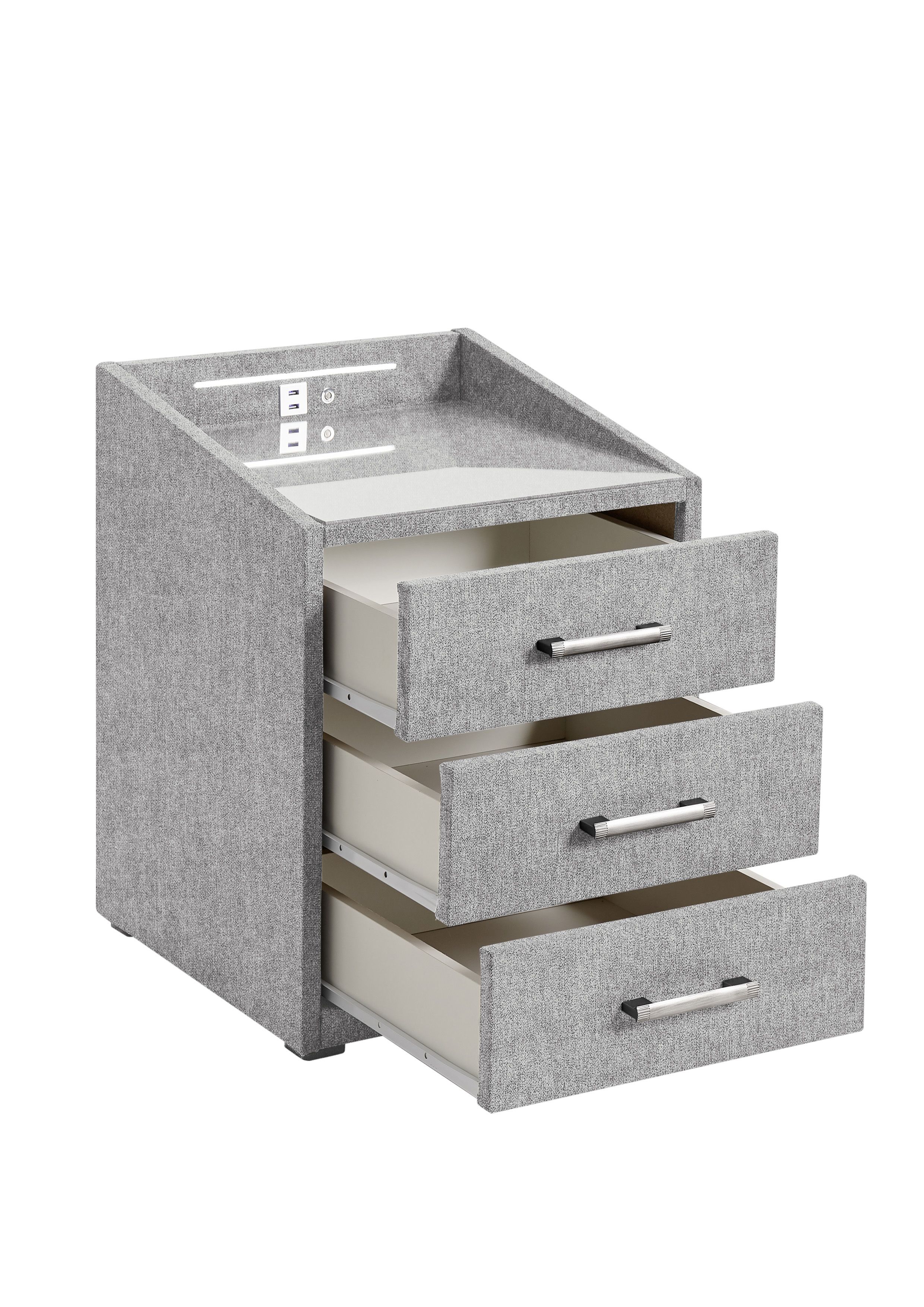 | Ausstattung Kommoden Phono Büro Regal: | Plateau en verre, Tiroirs, avec port USB, incl. éclairage | ||