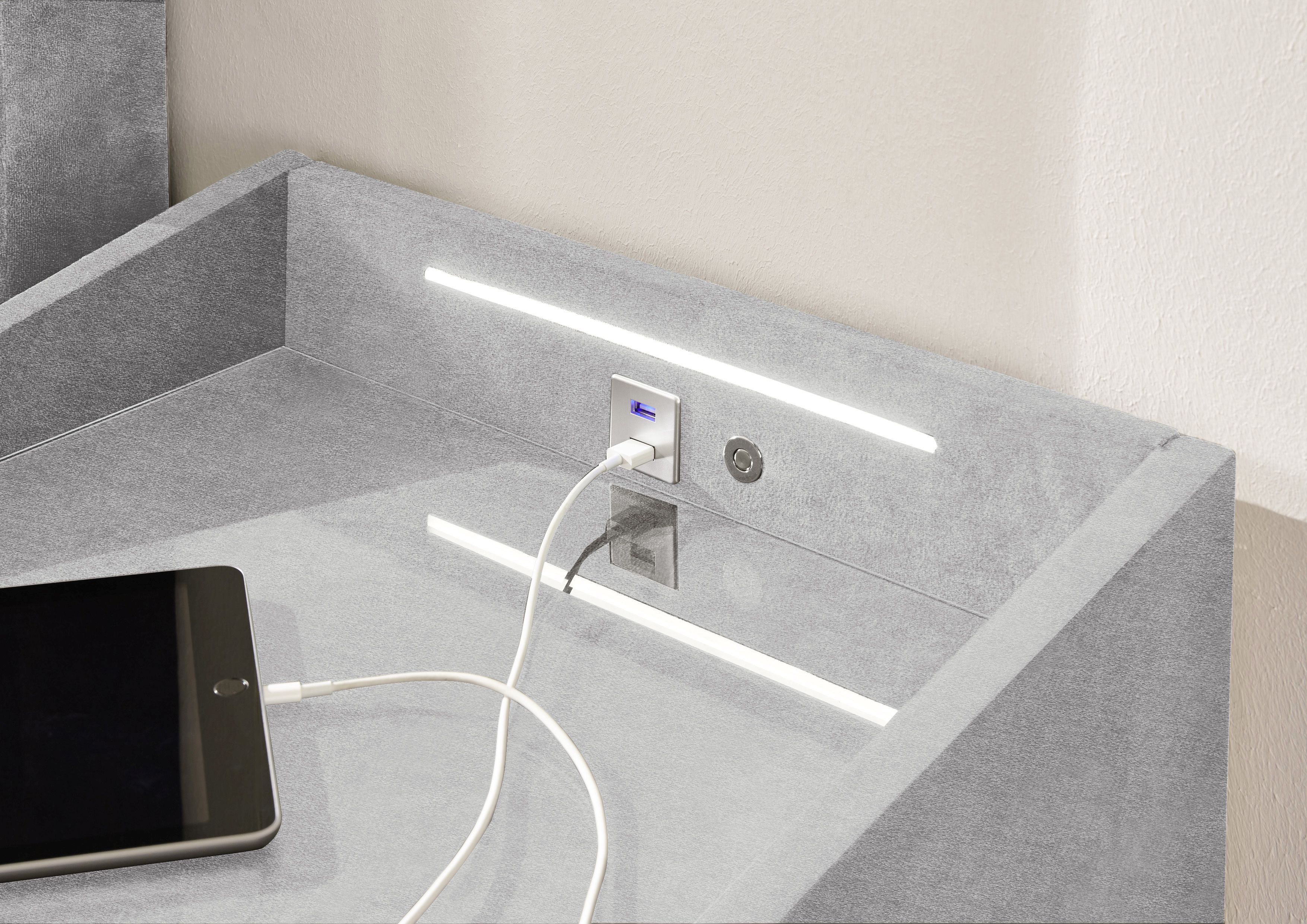 | Ausstattung Kommoden Phono Büro Regal: | Plateau en verre, Tiroirs, avec port USB, incl. éclairage | ||