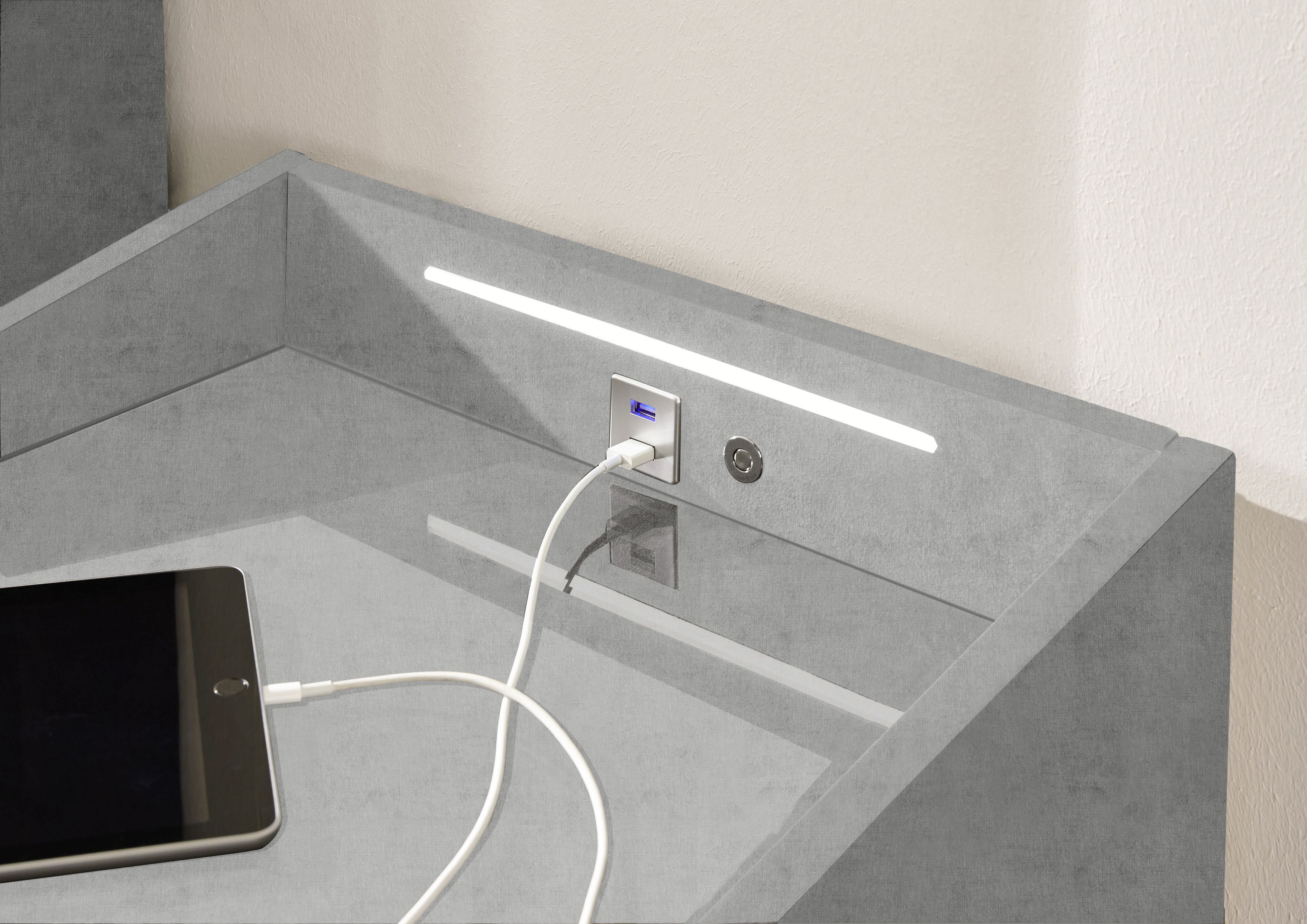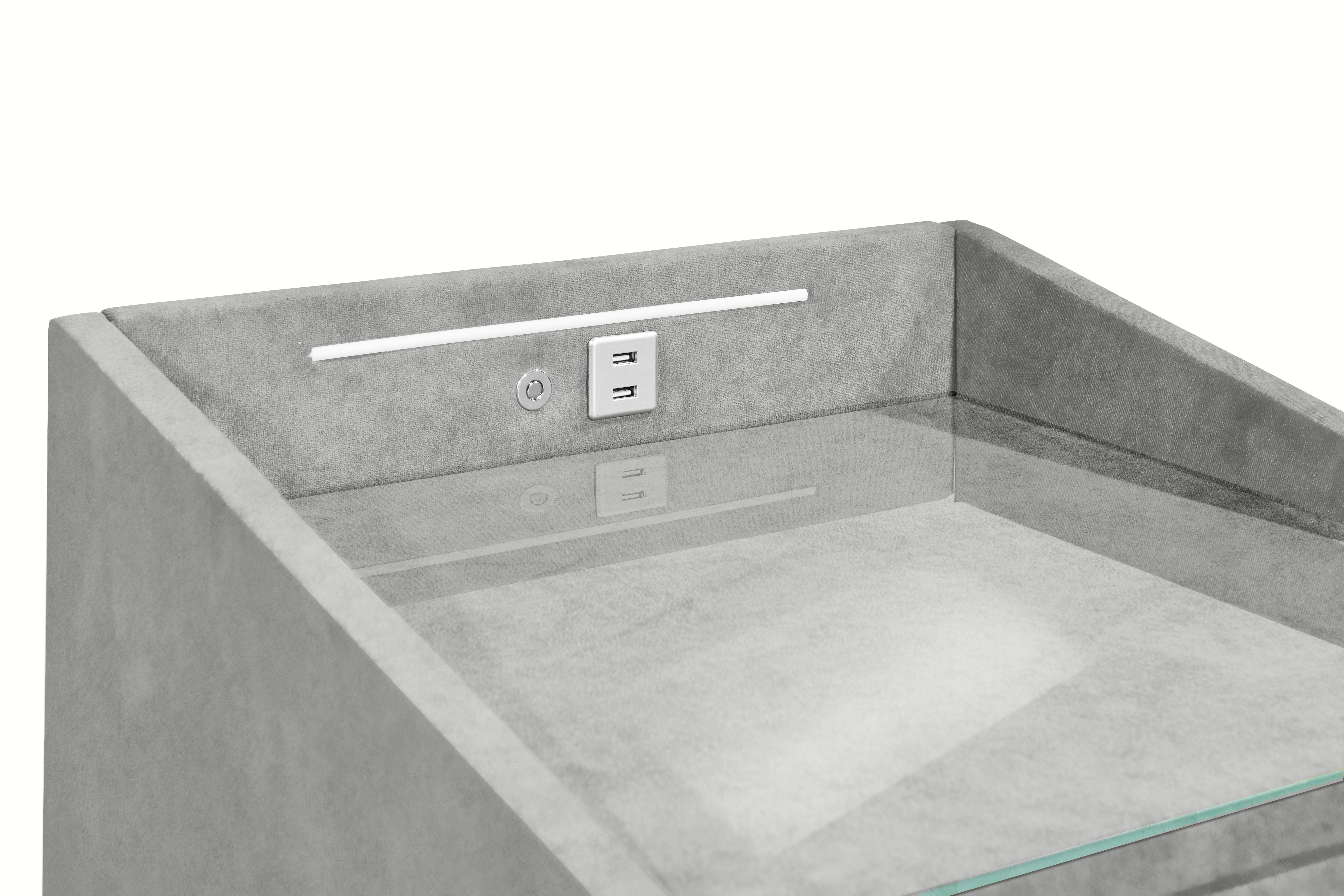 | Ausstattung Kommoden Phono Büro Regal: | Plateau en verre, Tiroirs, avec port USB, incl. éclairage | ||
