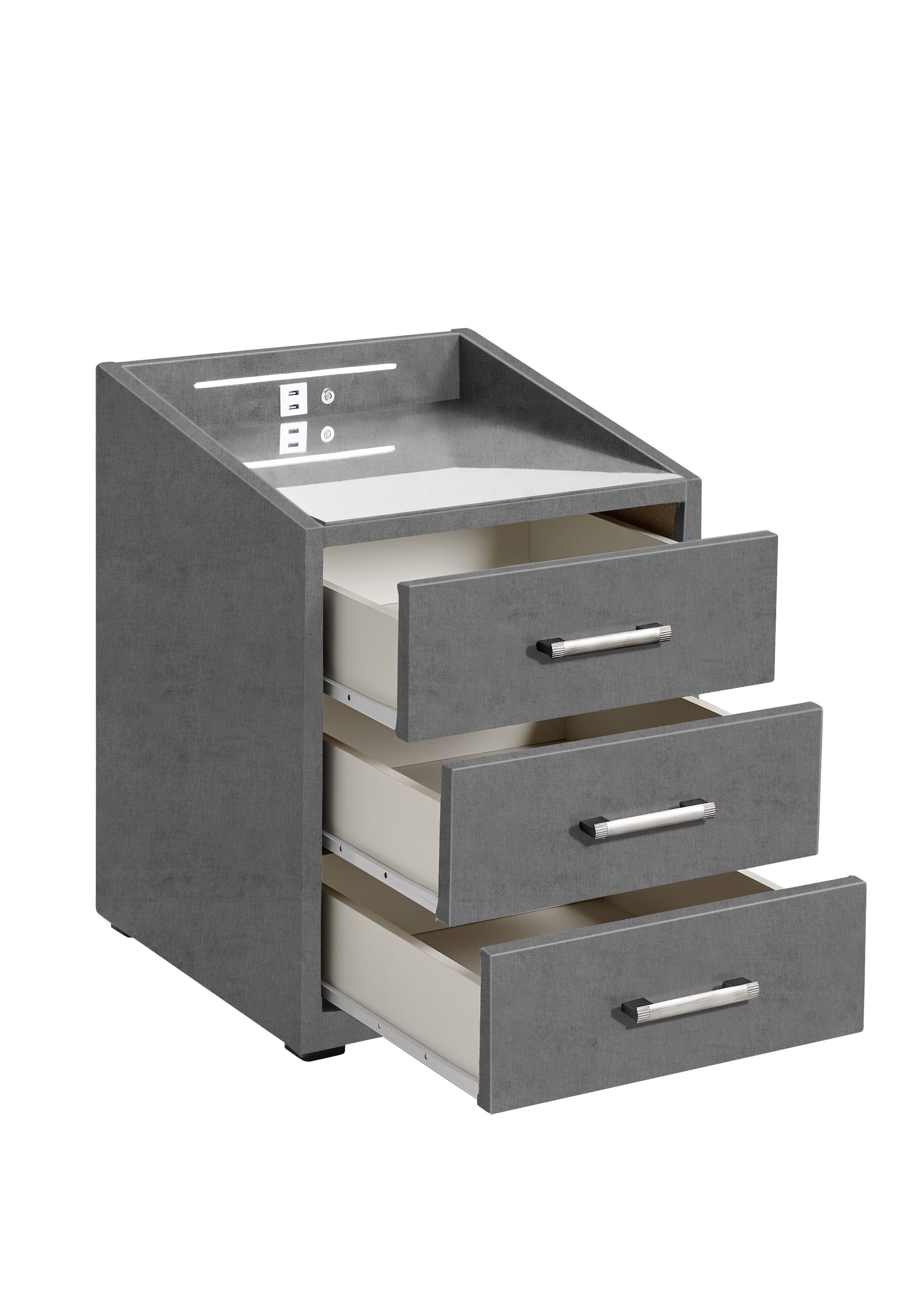 | Ausstattung Kommoden Phono Büro Regal: | Plateau en verre, Tiroirs, avec port USB, incl. éclairage | ||