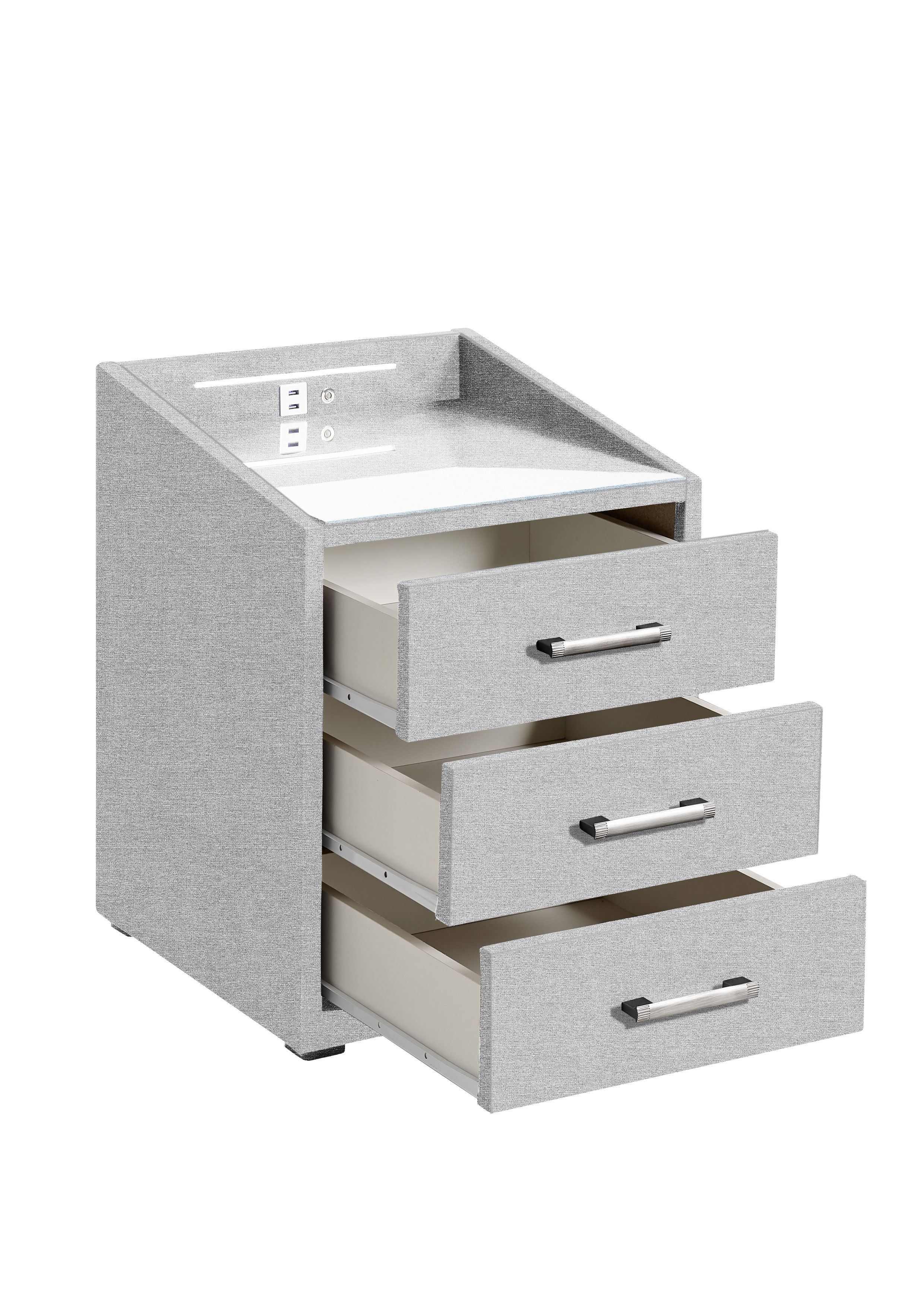 | Ausstattung Kommoden Phono Büro Regal: | Plateau en verre, Tiroirs, avec port USB, incl. éclairage | ||