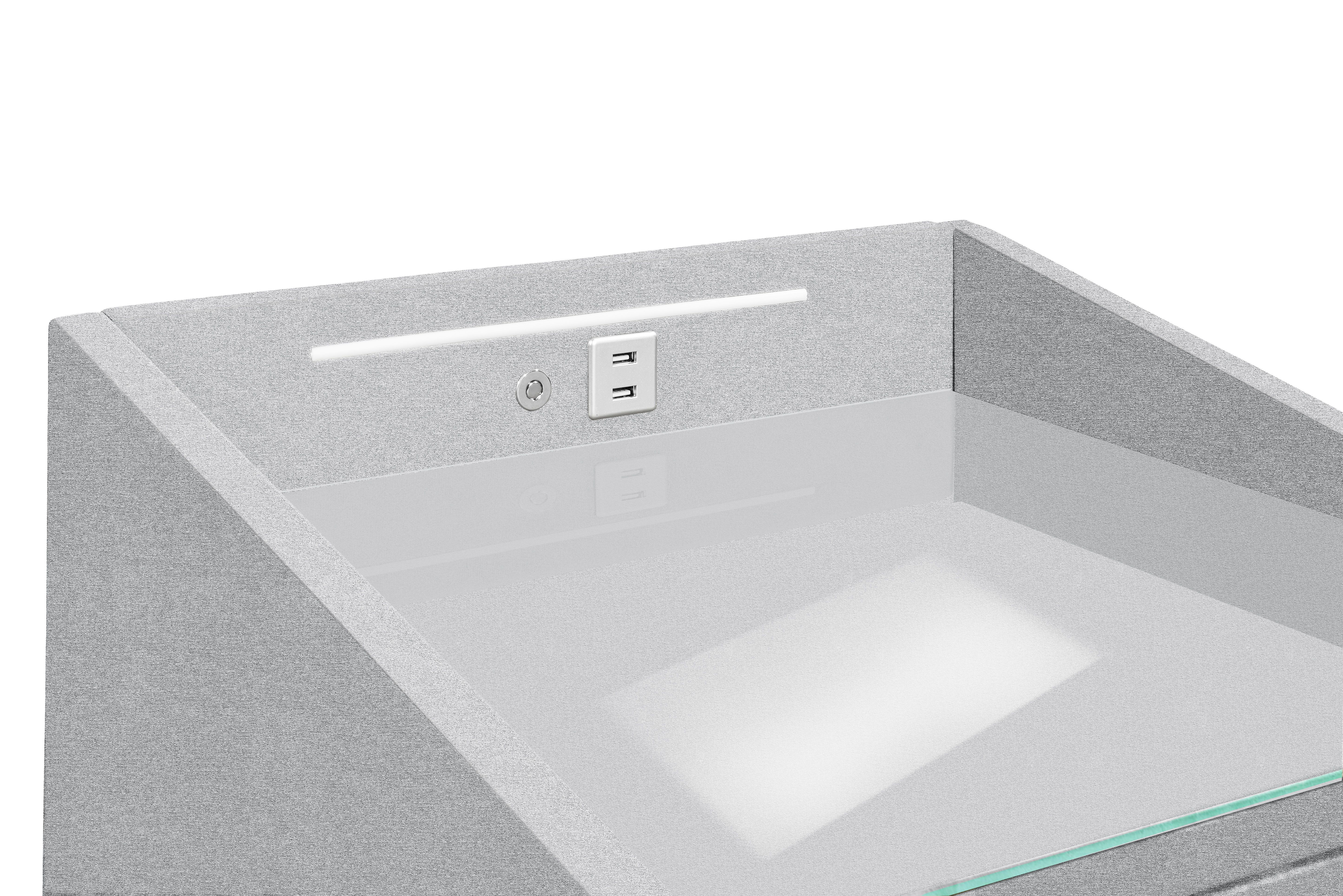 | Ausstattung Kommoden Phono Büro Regal: | Plateau en verre, Tiroirs, avec port USB, incl. éclairage | ||