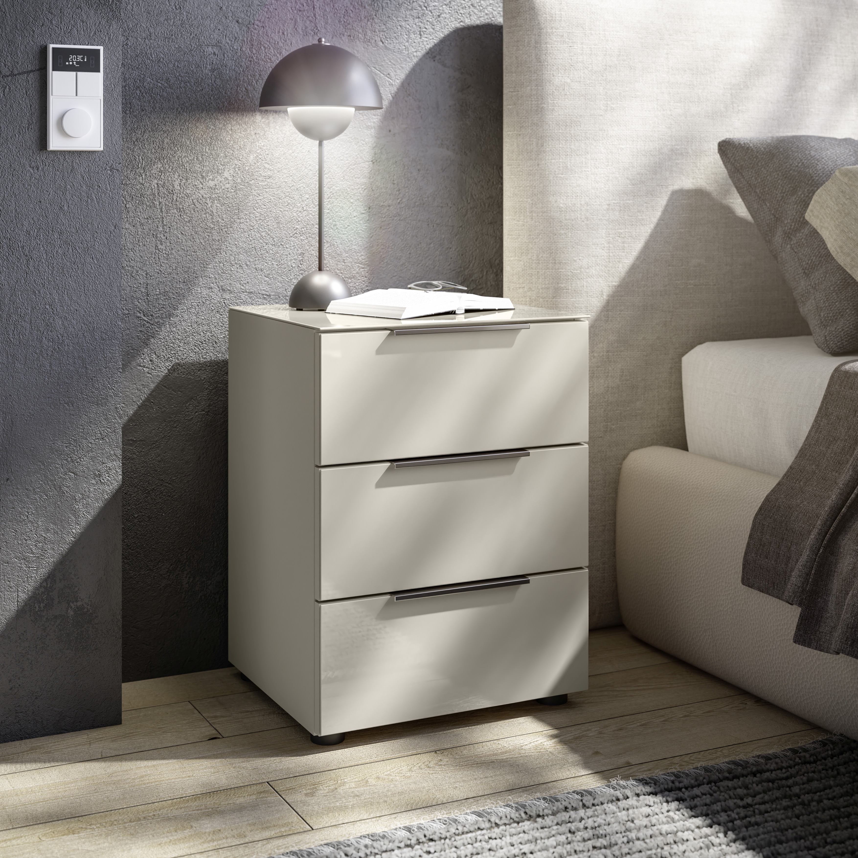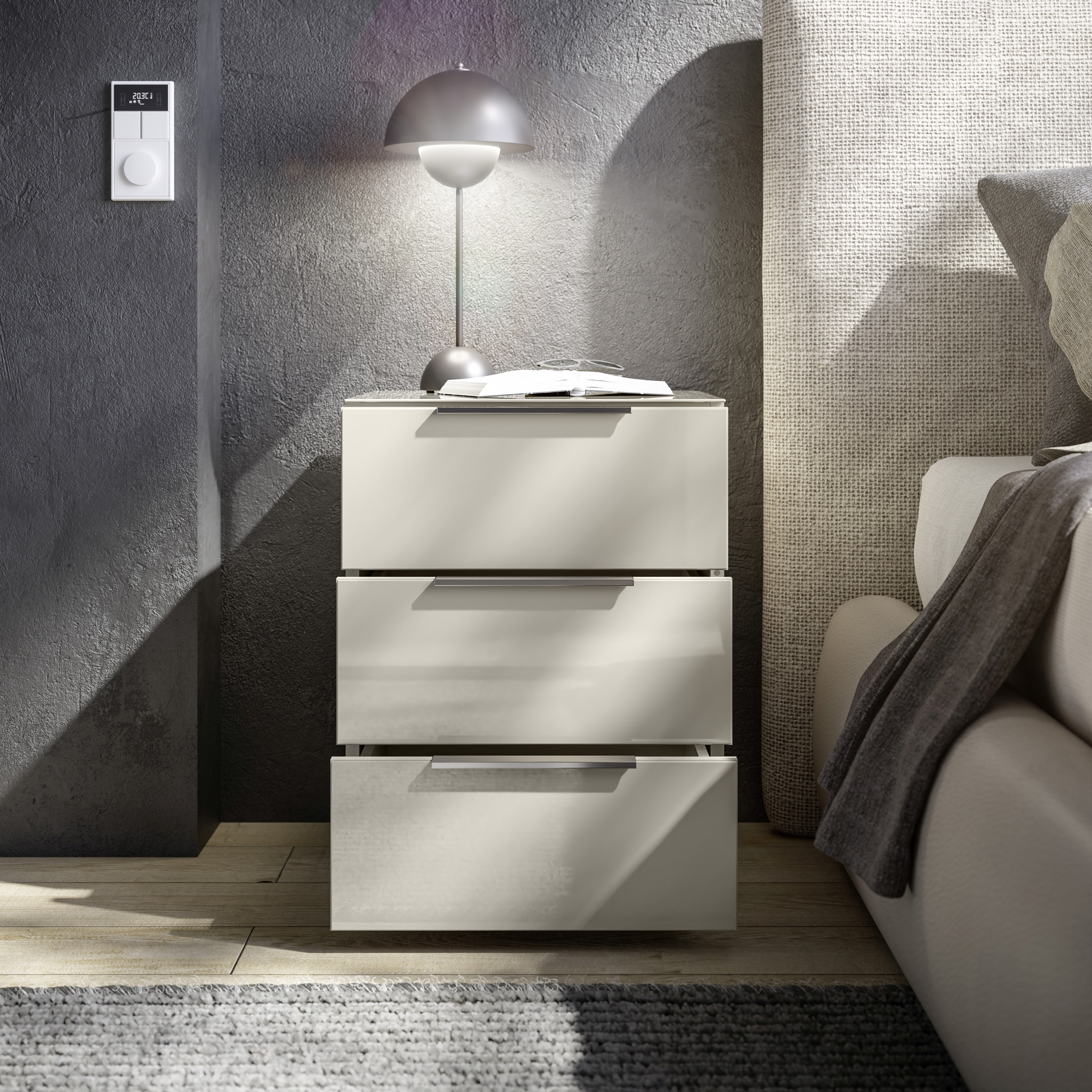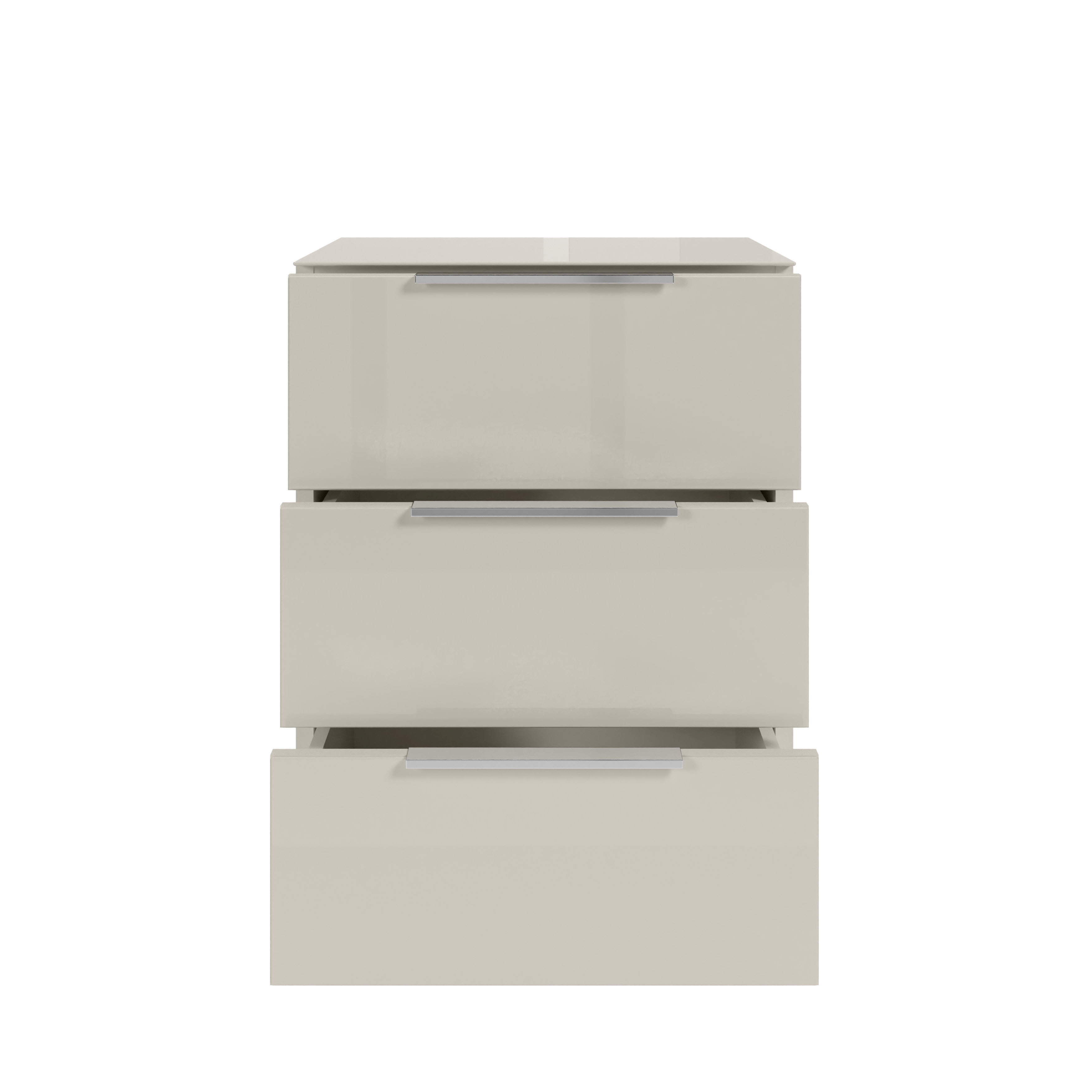Caisson : ton cachemire, panneaux de particules surfacés et mélaminés (PPSM), tablette en verre lisse