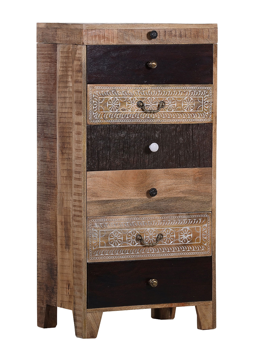 Façades : acacia massif (Inde), acacia massif avec gravures, MDF avec résine aspect bois vieilli