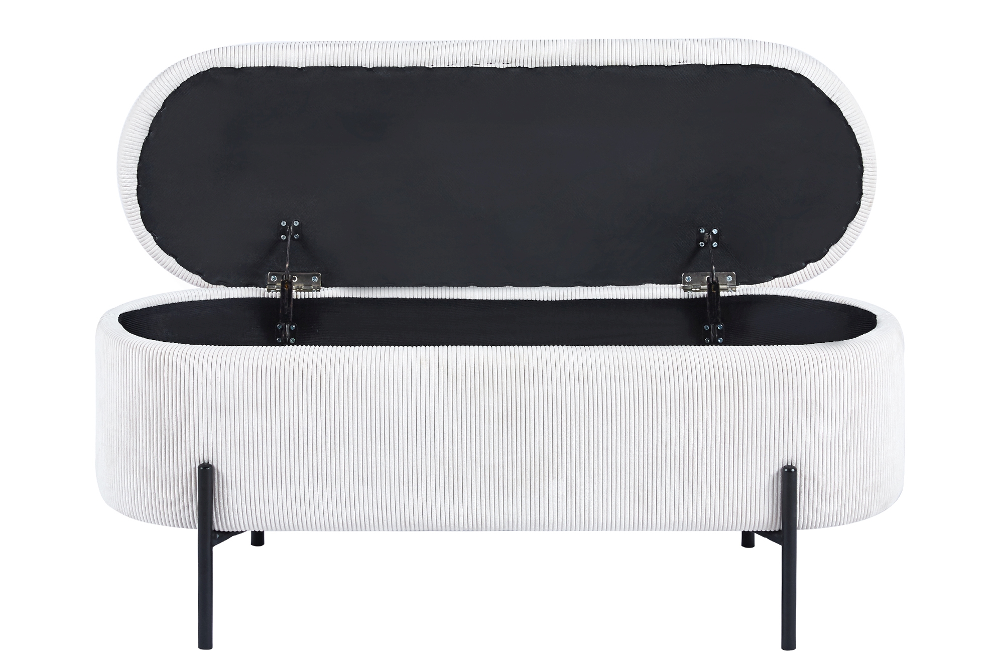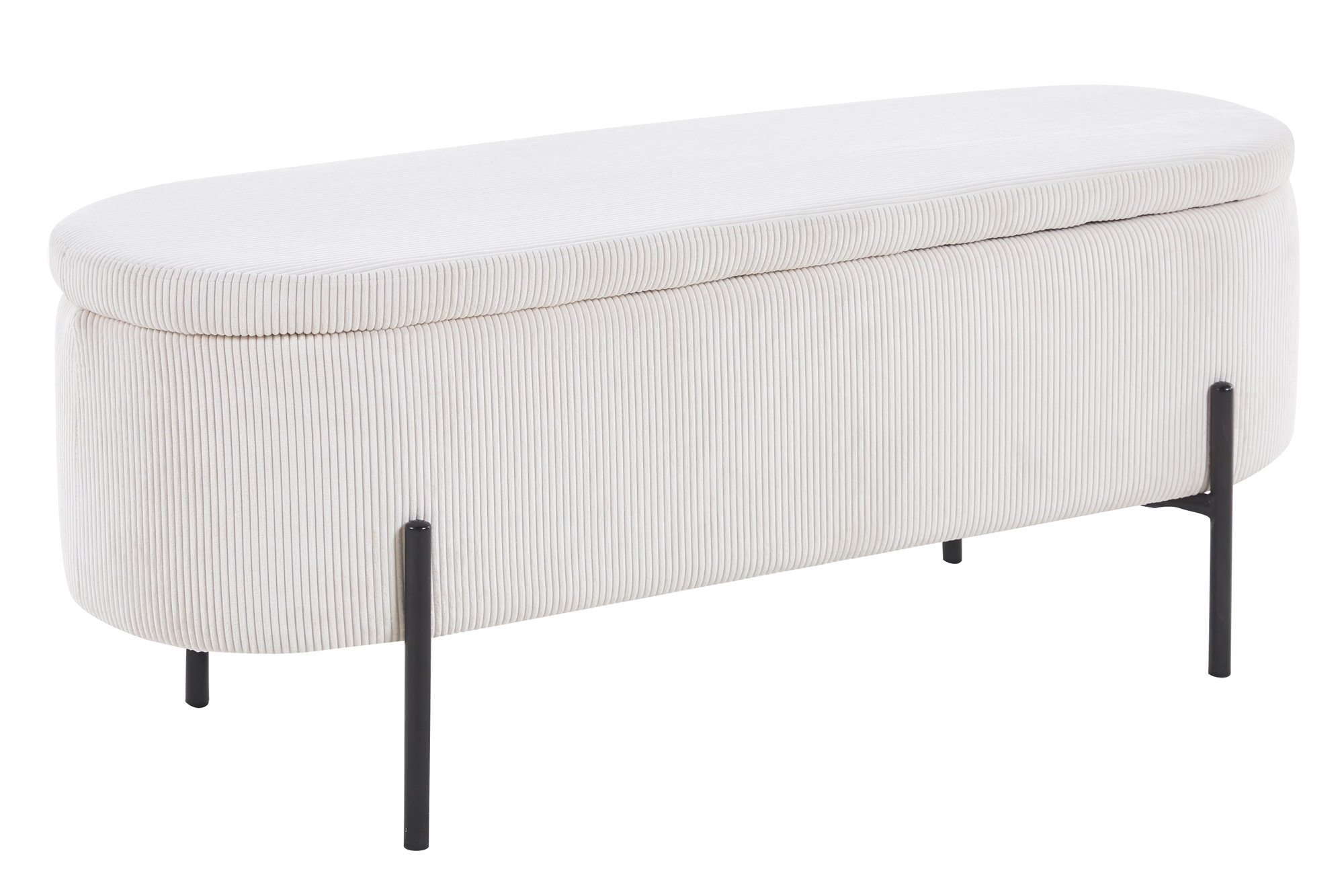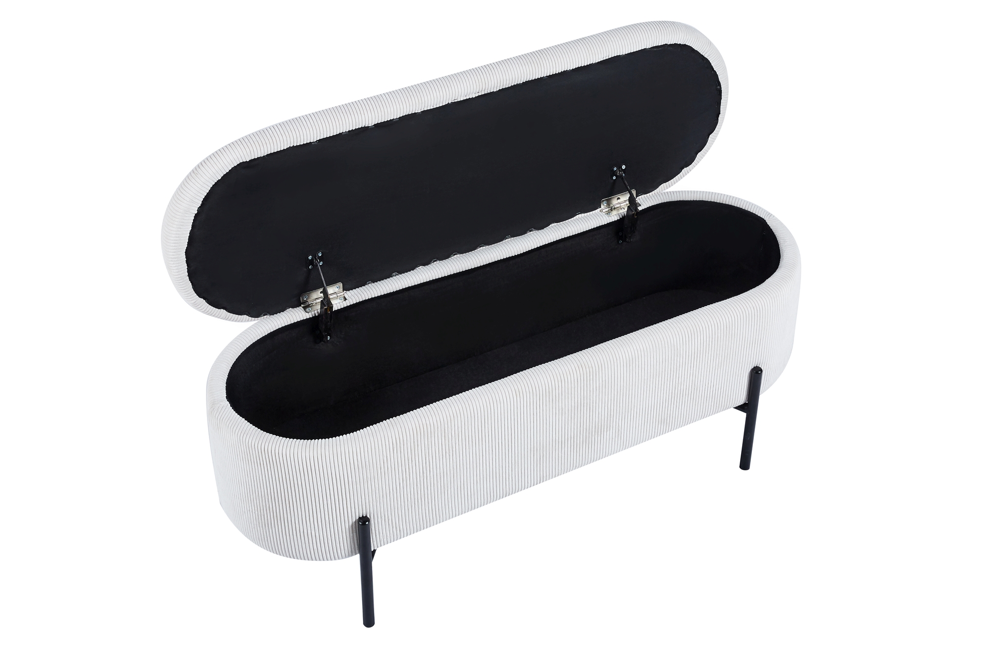 Si vous cherchez un meuble au design scandinave ultra pratique, ce bout de lit dans un velours côtelé tendance est fait pour vous ! Ce pouf rembourré marque des points par son design ultra moderne, mais aussi par le couvercle rabattable et l’espace de rangement astucieux. Couvertures, linge de lit ou vêtements : vous pourrez faire régner l’ordre de façon stylée et ranger tout ce qui traîne dans la chambre à l’intérieur de ce coffre de lit. Le velours côtelé souple confère à ce coffre bout de lit un aspect moderne et un look intéressant grâce aux coutures originales. Le piètement design à pieds hauts est fabriqué en métal noir finition époxy et apporte la touche finale à l’ensemble.