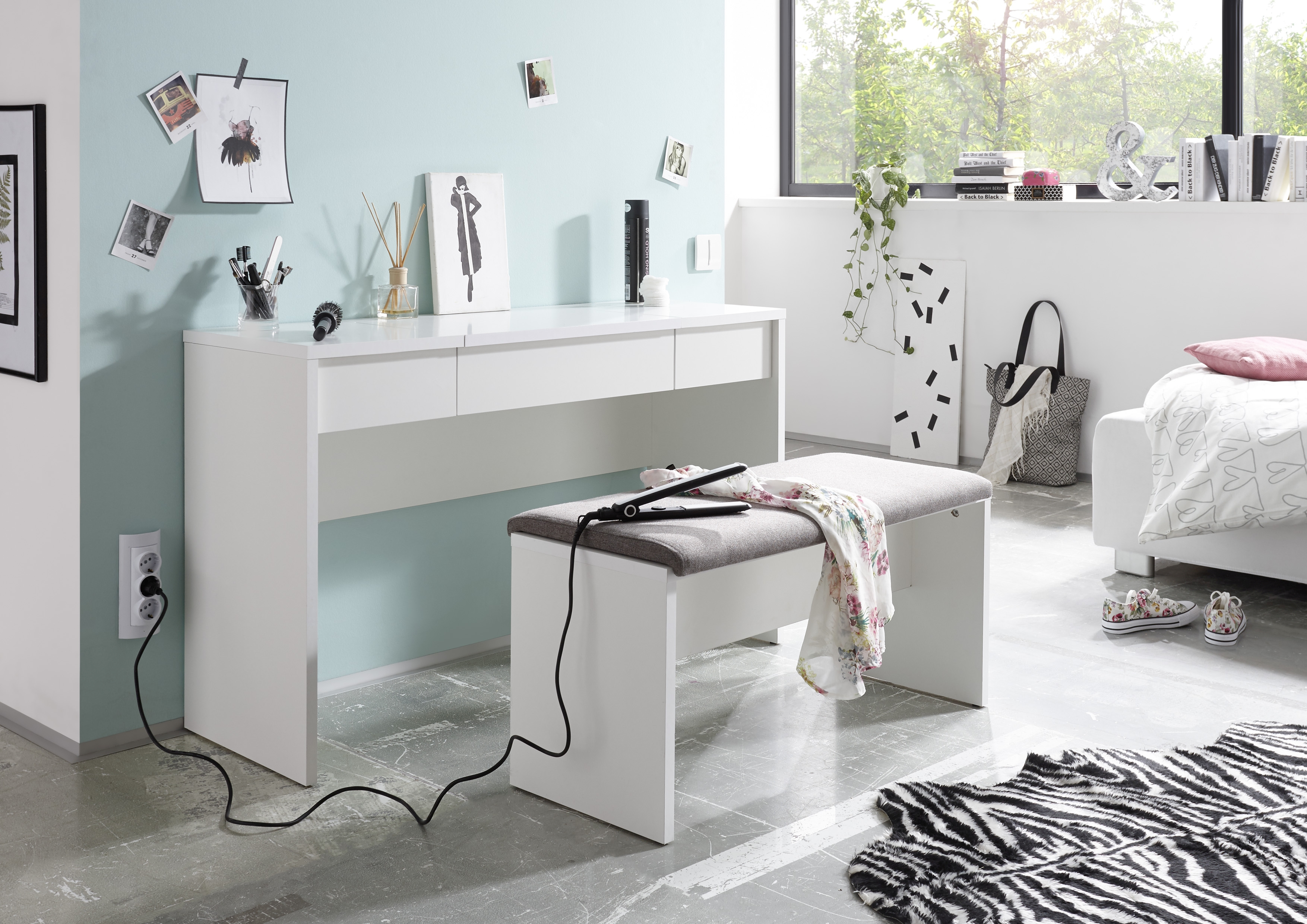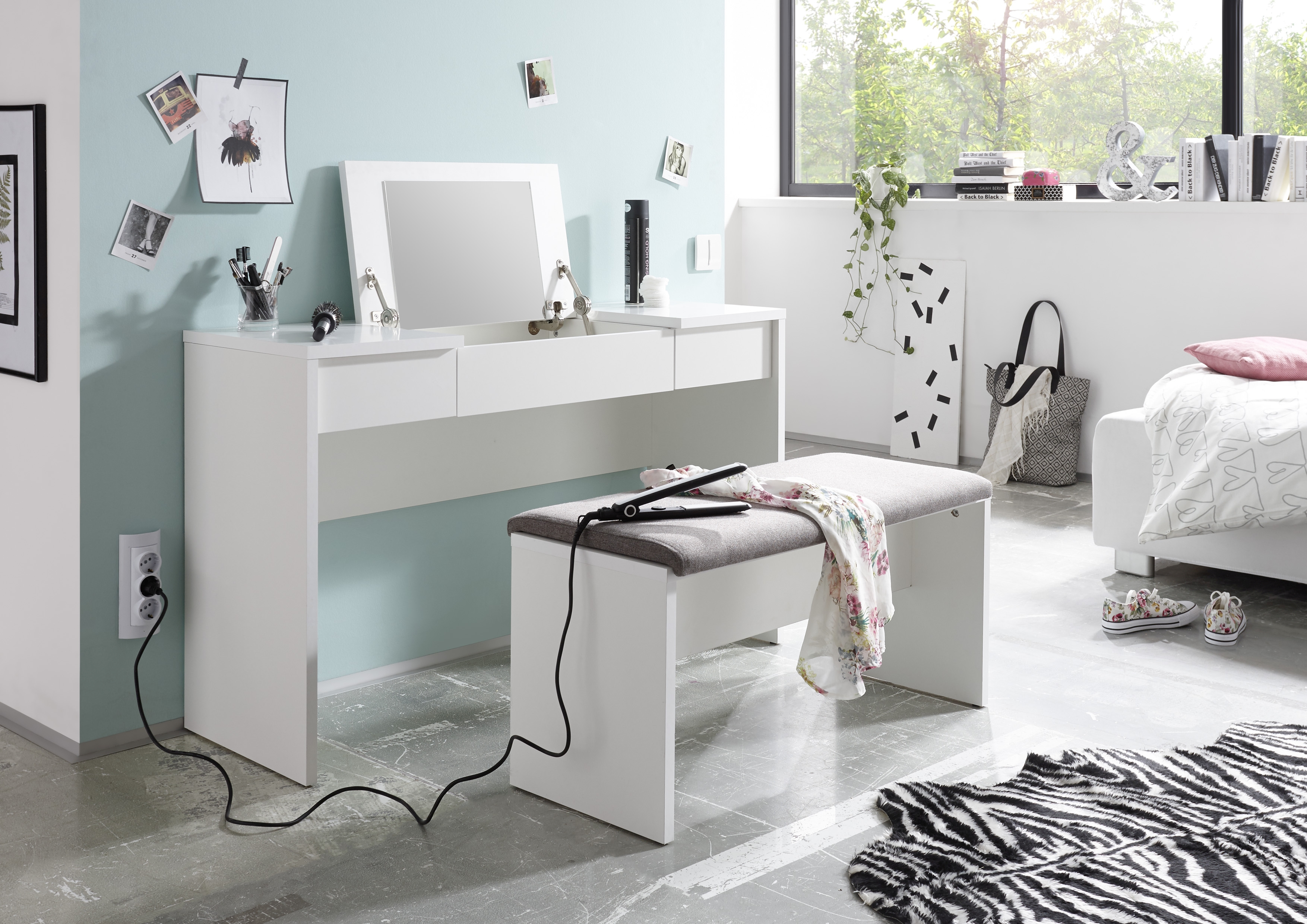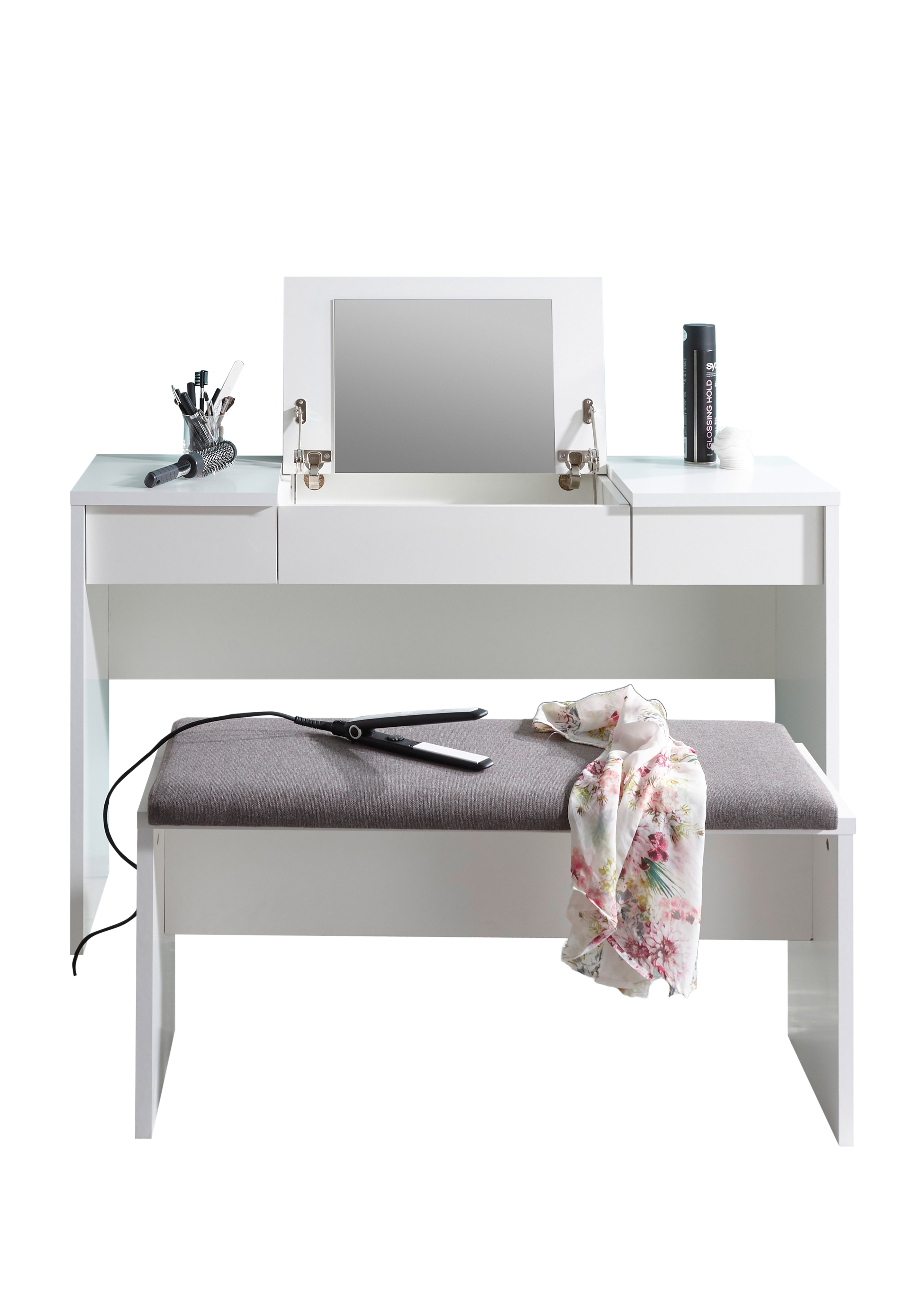 1 coiffeuse avec 2 tiroirs et 1 abattant avec miroir