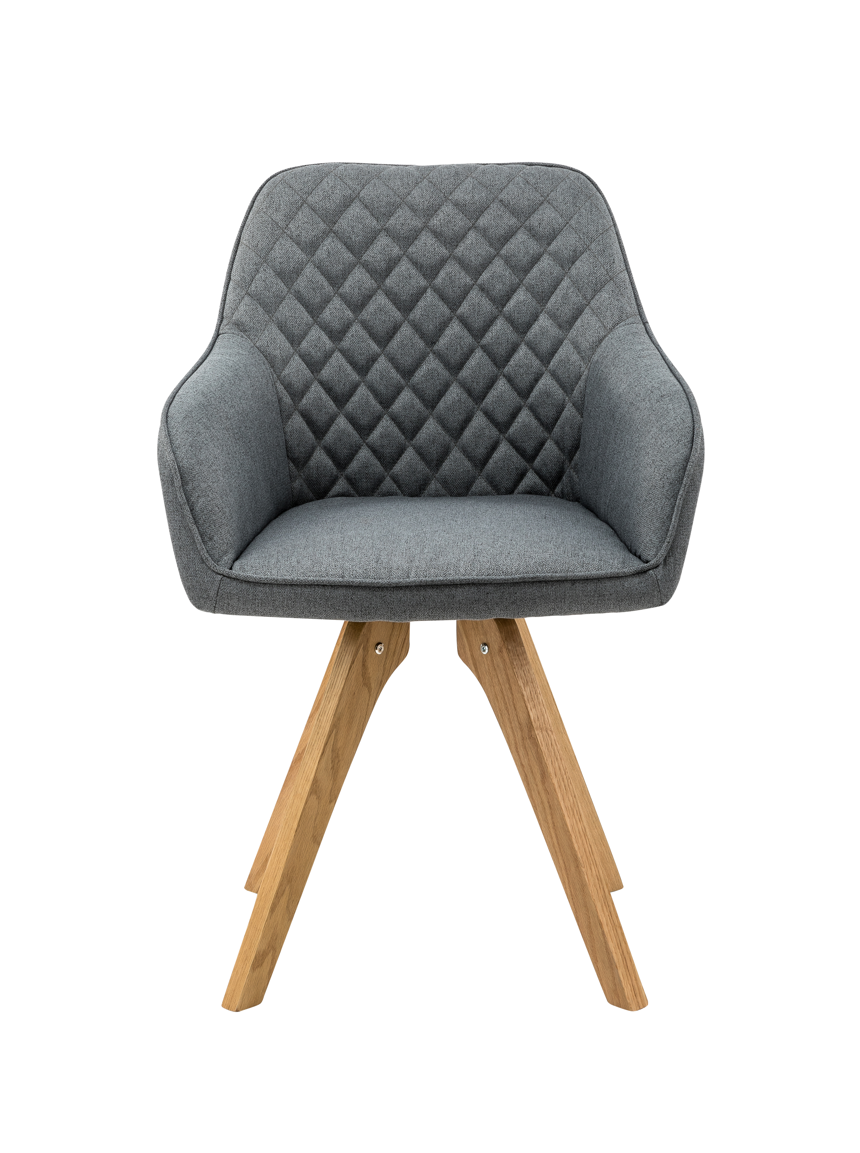 - Chaises avec revêtement textile ton gris et dossier matelassé (surpiqûres en forme de losanges)