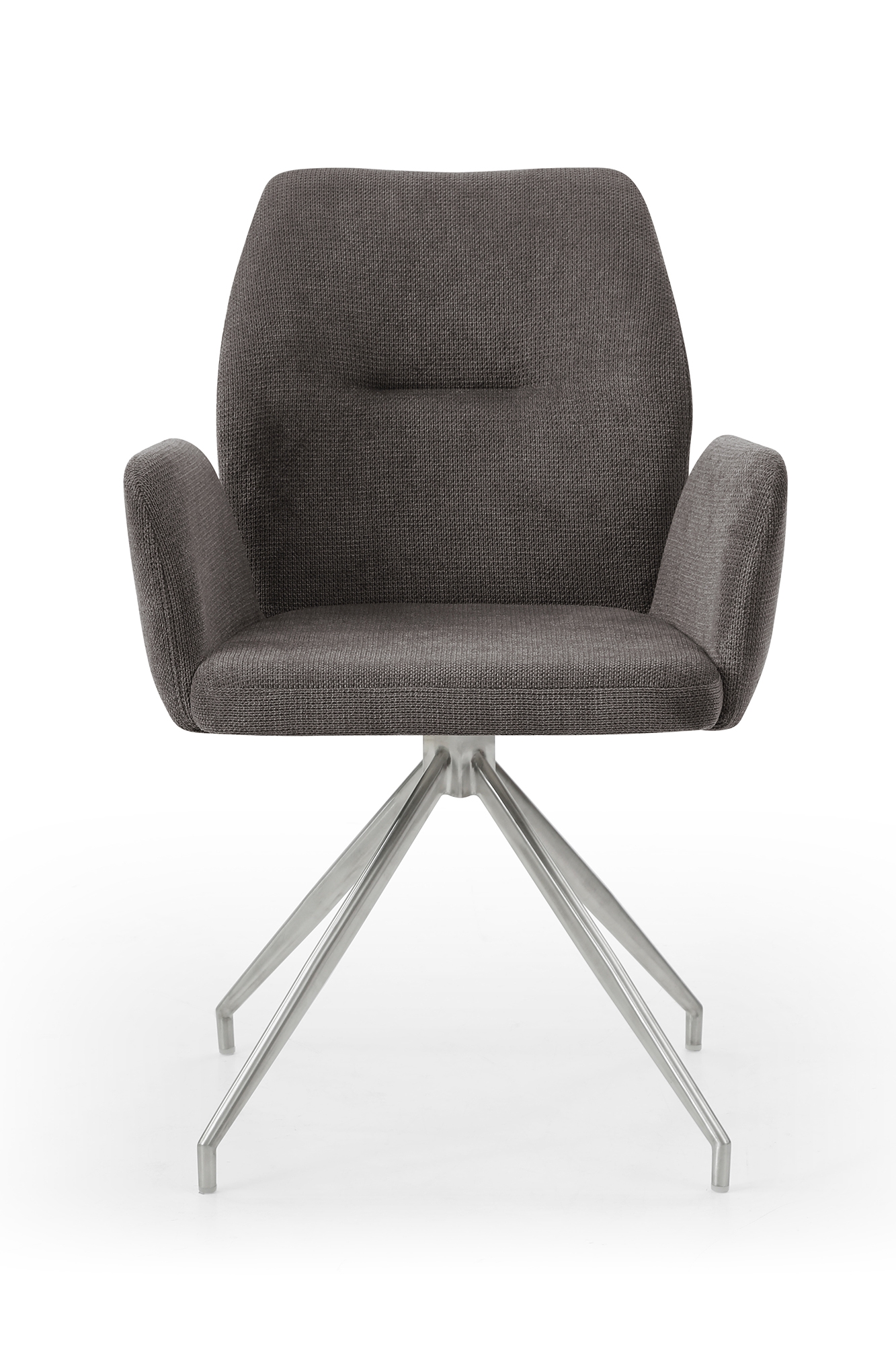 - Chaises avec dossier et accoudoirs de forme ergonomique et piètement en acier inoxydable