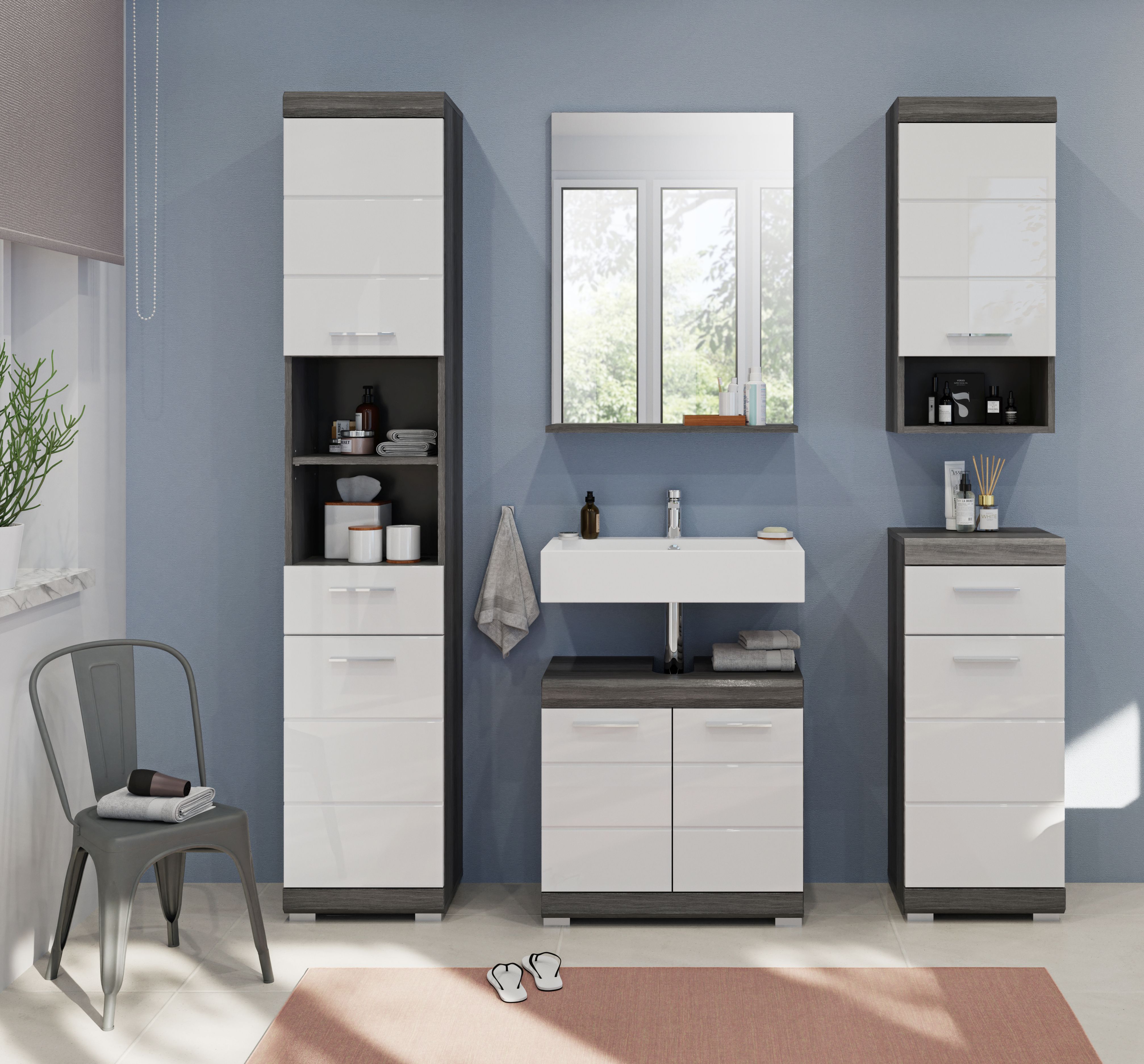 • Design/style : colonne de salle de bains décor argent fumé et finition ton blanc ultra brillant qui conférera une ambiance moderne et esthétique à votre salle de bains ou votre buanderie grâce à son design élancé et tendance.