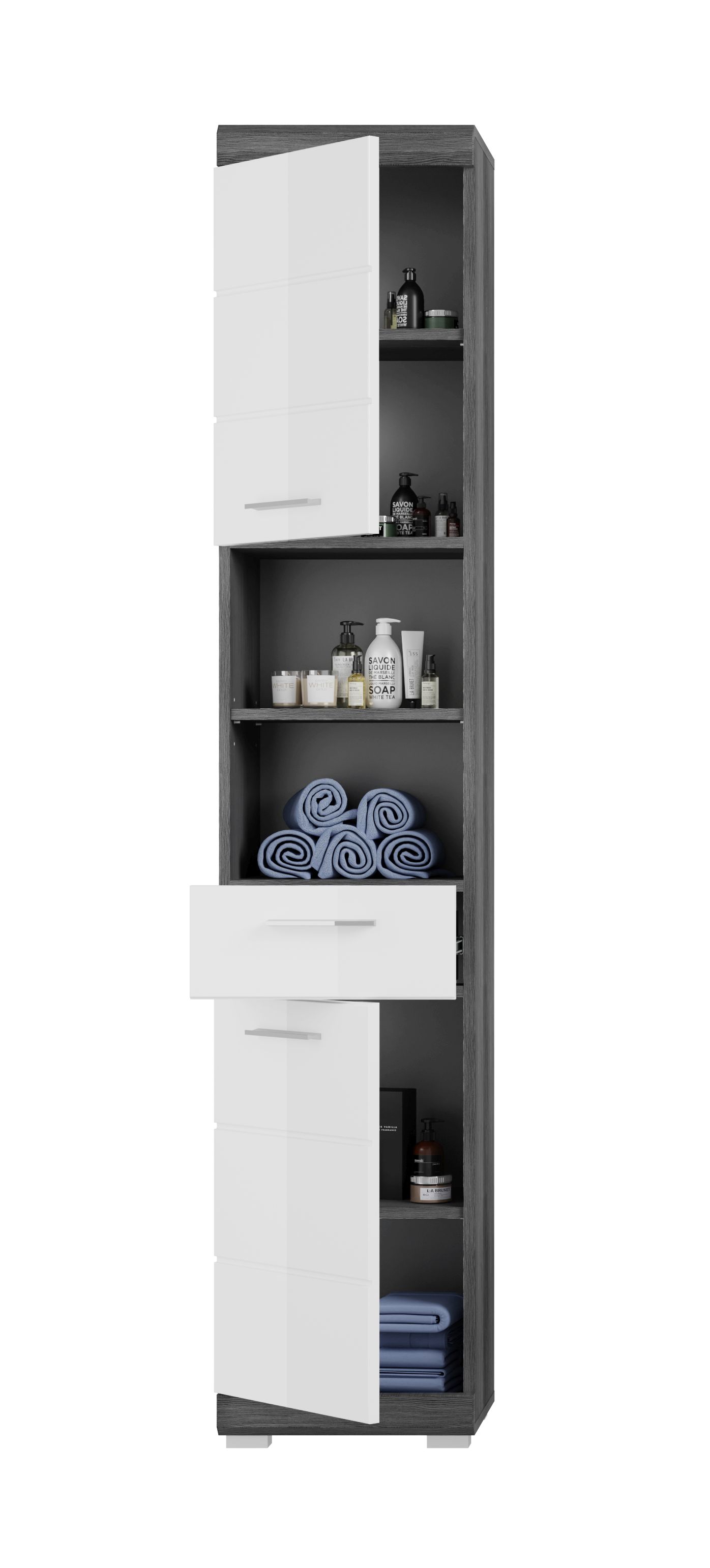 Dans notre collection tendance, nous vous présentons un meuble colonne décor argent fumé et finition ton blanc ultra brillant qui apportera une touche moderne à votre salle de bains. Avec ses dimensions compactes (37x191x31 cm), il offre un espace de rangement pratique dans un design stylé. Découvrez la combinaison parfaite entre aspect pratique et look contemporain avec cette colonne de salle de bains tendance.