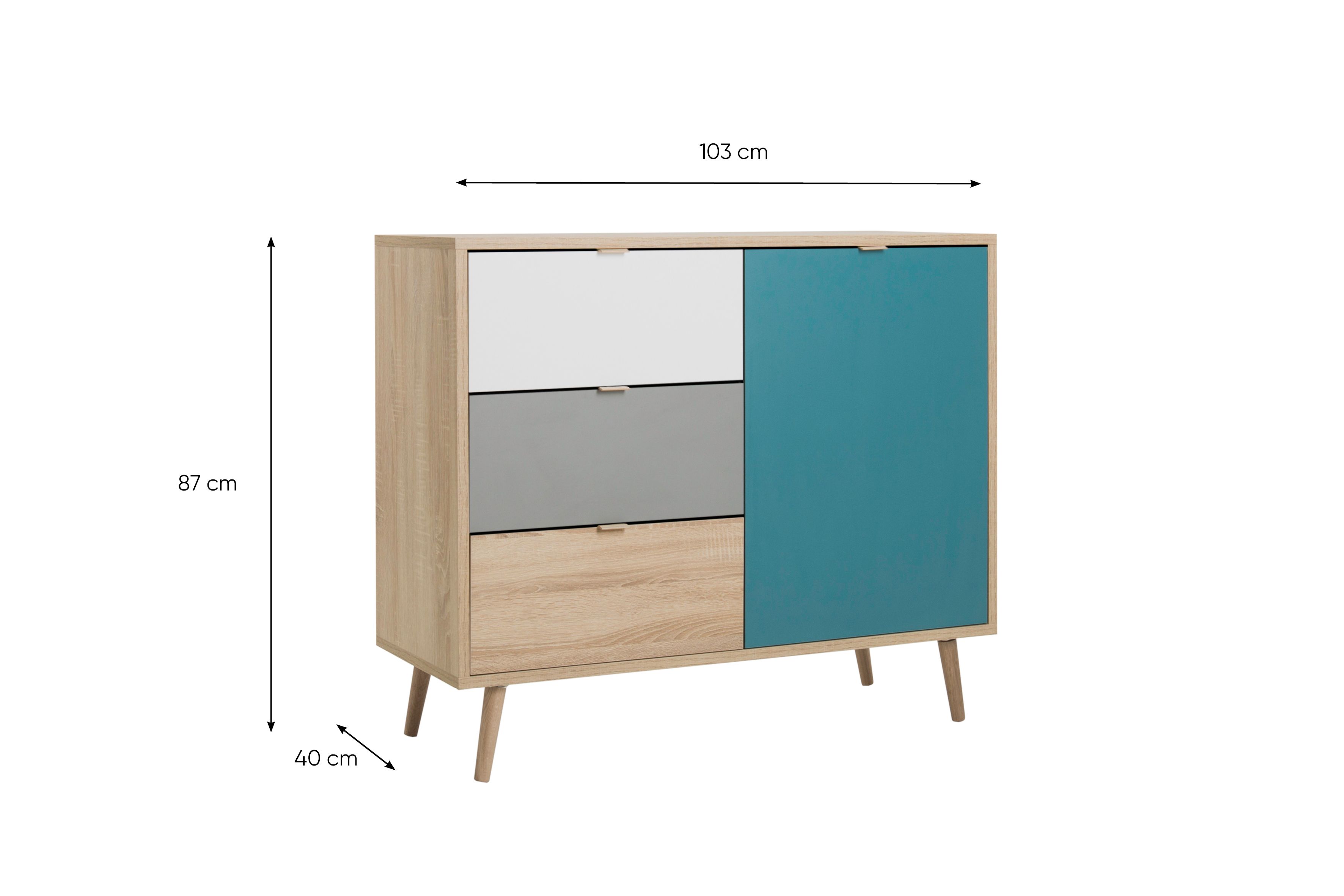 Façade : imitation chêne Sonoma / blanc / bleu pétrole / gris
