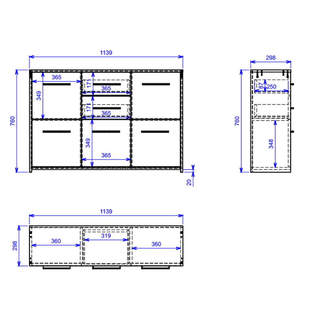 Avec 2 tiroirs montés sur glissières métalliques et un total de 5 portes, ce bahut offre un espace de rangement généreux pour stocker vos affaires de manière sûre et ordonnée.