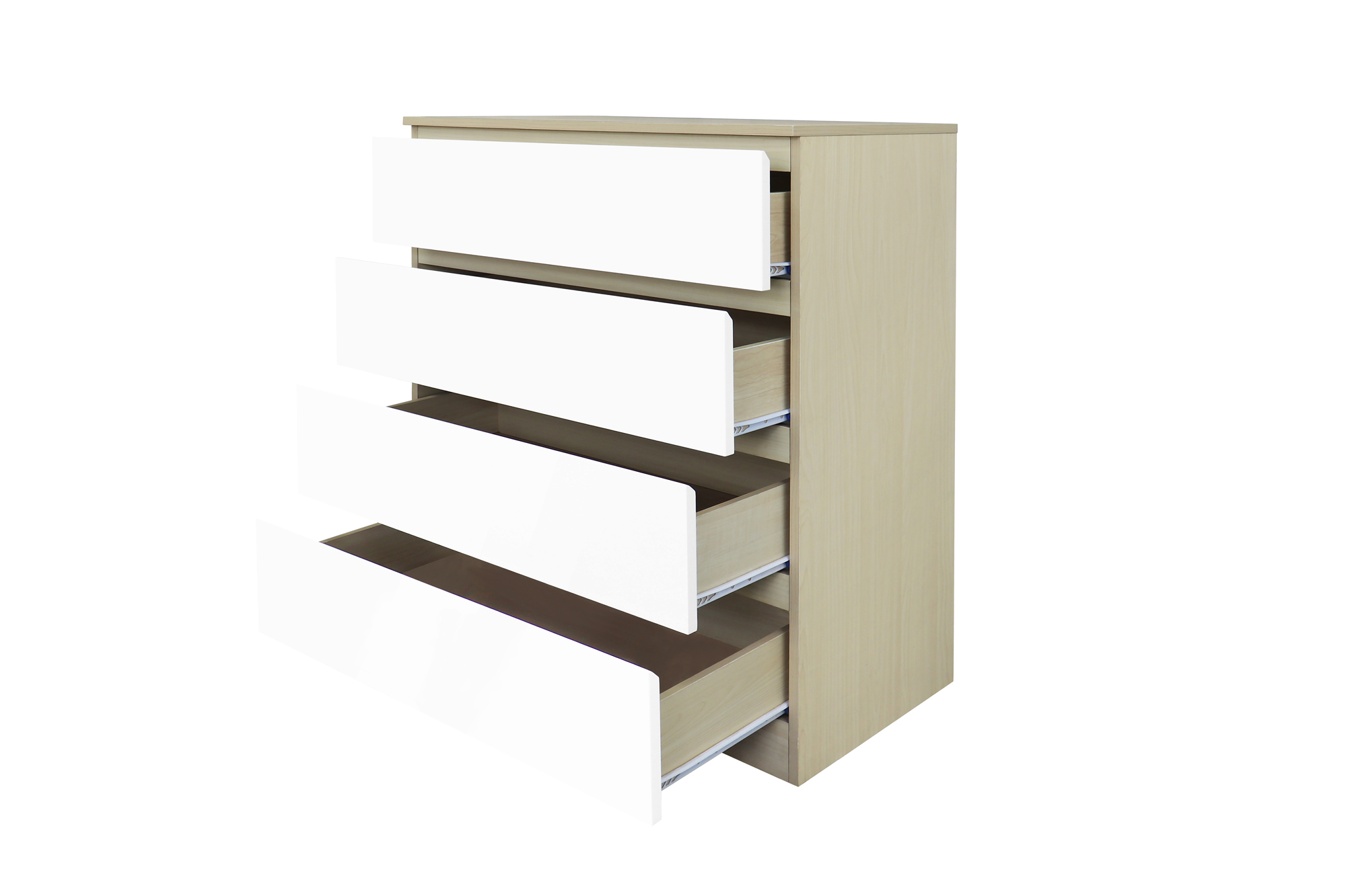 La commode intemporelle dans un look scandinave ultra chic est proposée dans une combinaison de couleurs ton naturel et ton blanc qui se combine à merveille avec différents styles grâce à sa neutralité. La commode offre dans quatre tiroirs un bel espace de rangement pour vos affaires. Grâce à sa sobriété, elle est très polyvalente et peut s'utiliser dans différentes pièces. Elle est pratique et fonctionnelle dans le salon, la salle à manger et la chambre qu'elle met joliment en valeur.