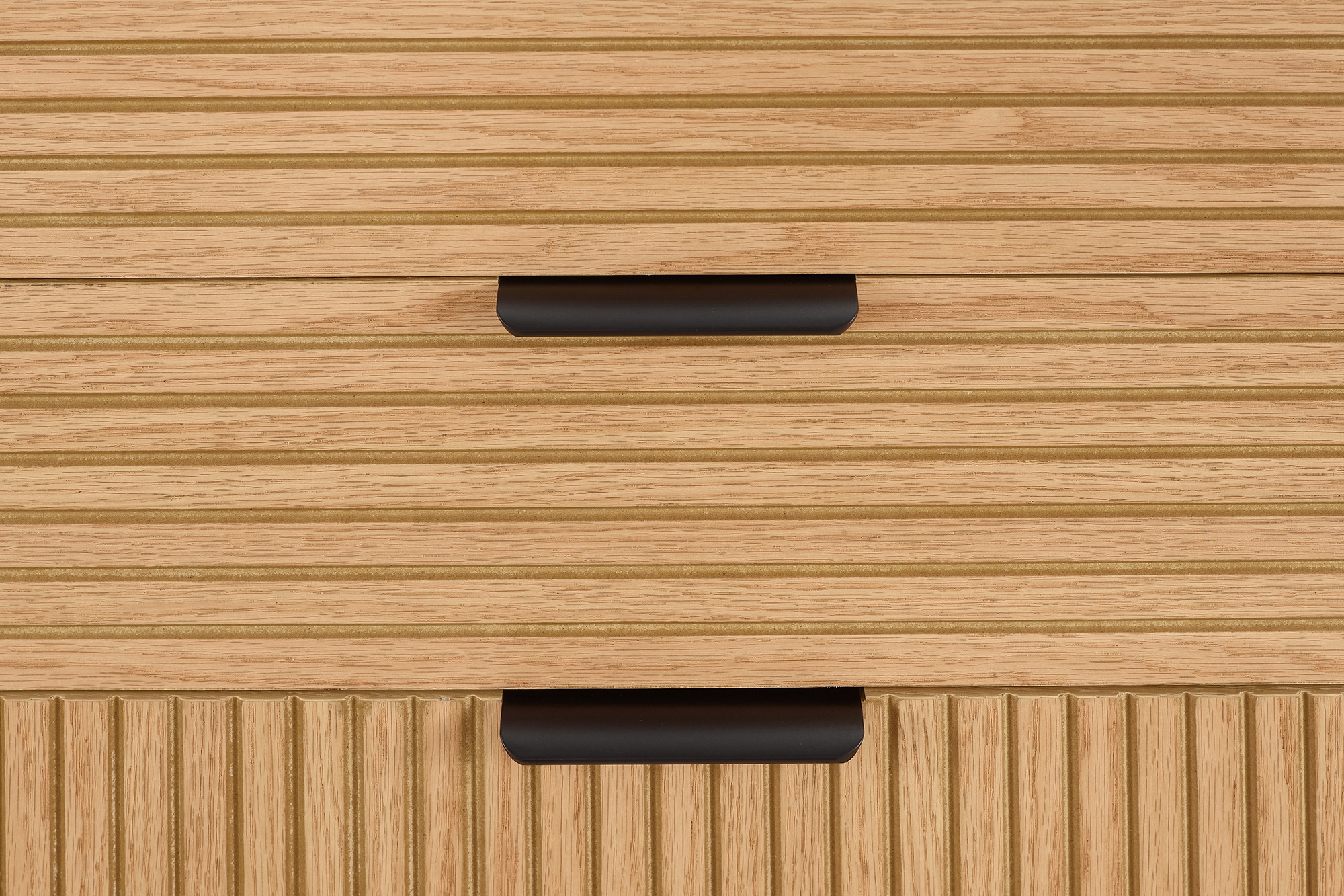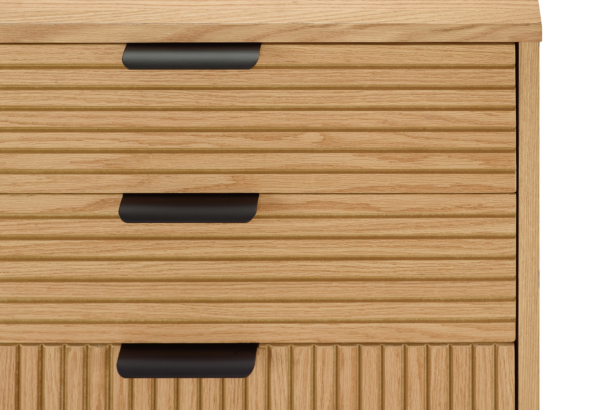 Le placage chêne clair et les pieds hauts laqués ton noir créent un contraste moderne et font entrer le style scandinave ultra tendance dans votre intérieur. Un vernis polyuréthane résistant aux rayures est appliqué sur le caisson du meuble : ceci le rend particulièrement résistant et robuste pour pouvoir en profiter longtemps. La structure avec des pieds fins confère au meuble un aspect léger et aérien et un look tendance digne d’un loft. Le placage en chêne apporte un charme supplémentaire à l’ensemble. La commode dispose de 6 tiroirs offrant un espace de stockage supplémentaire à l’abri des regards… pour que le rangement devienne un jeu d’enfant !