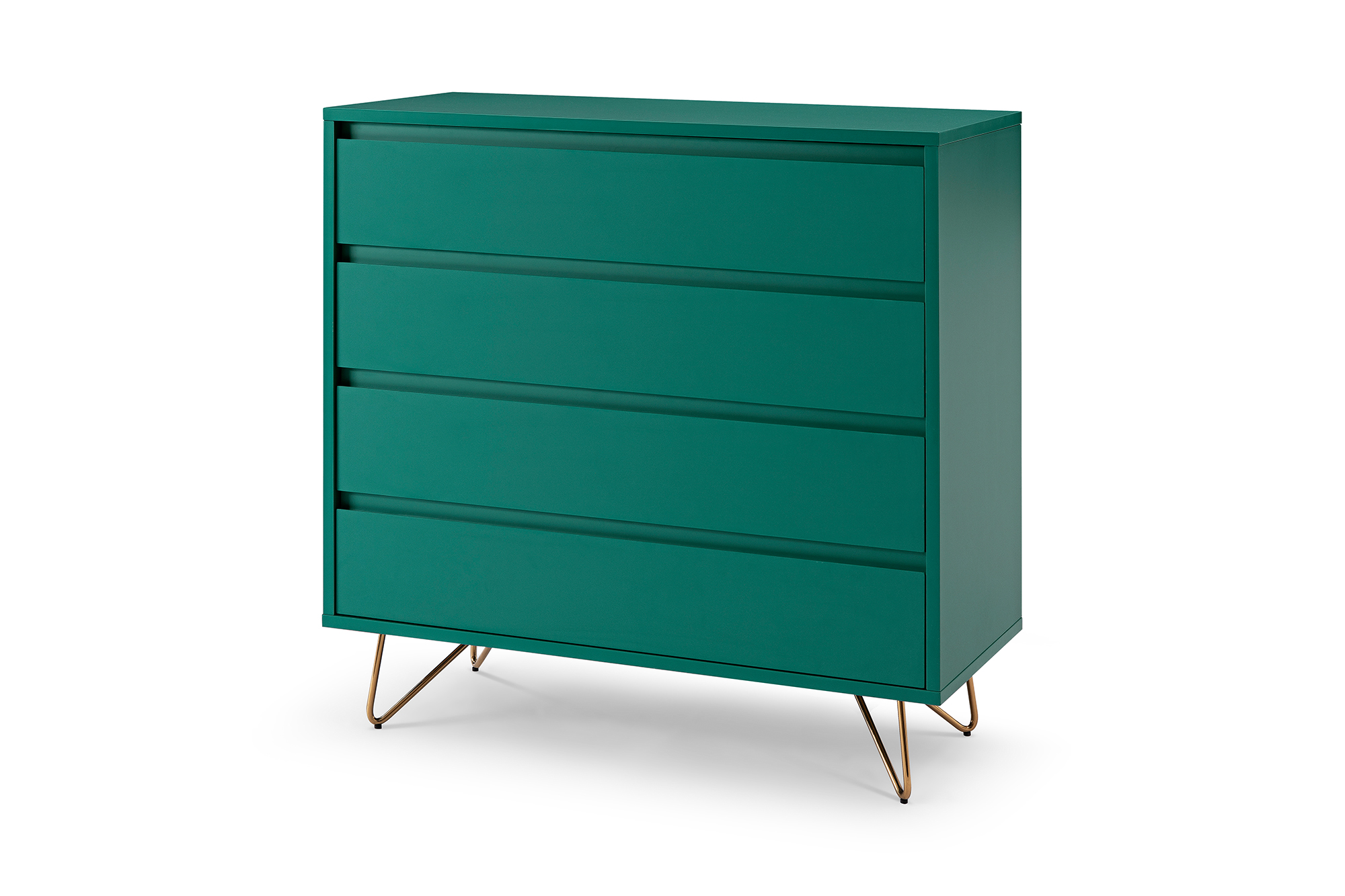 Cette commode moderne dans un joli design scandinave attirera tous les regards. L'association de teintes sobres et des pieds métalliques ton doré fait de cette commode un meuble très particulier. Grâce à quatre tiroirs spacieux, vous disposerez de beaucoup d'espace de rangement stylé pour les petites choses du quotidien. Le design scandinave moderne de cette commode large sera toujours tendance et se combinera à merveille avec votre ameublement déjà existant.