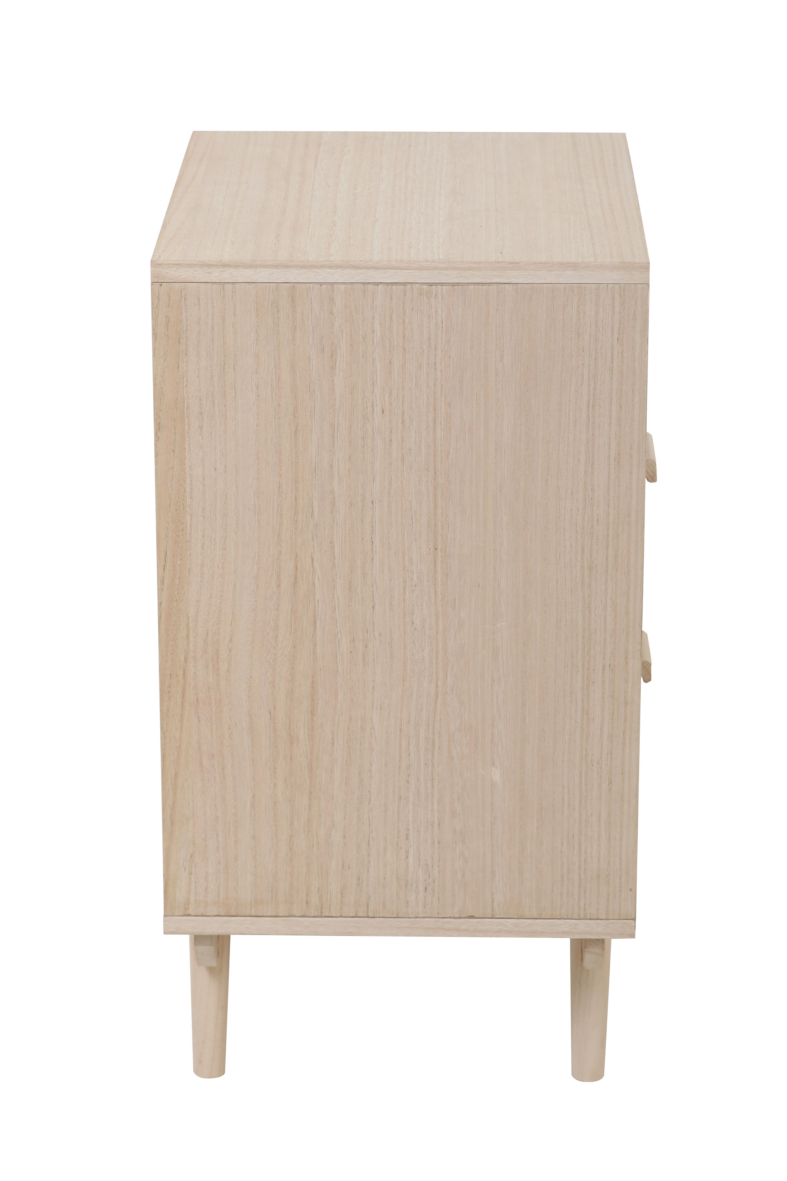 Caisson et façade : MDF (panneaux de fibres de bois de densité moyenne) et placage en bois de paulownia (Chine) avec façade en cannage