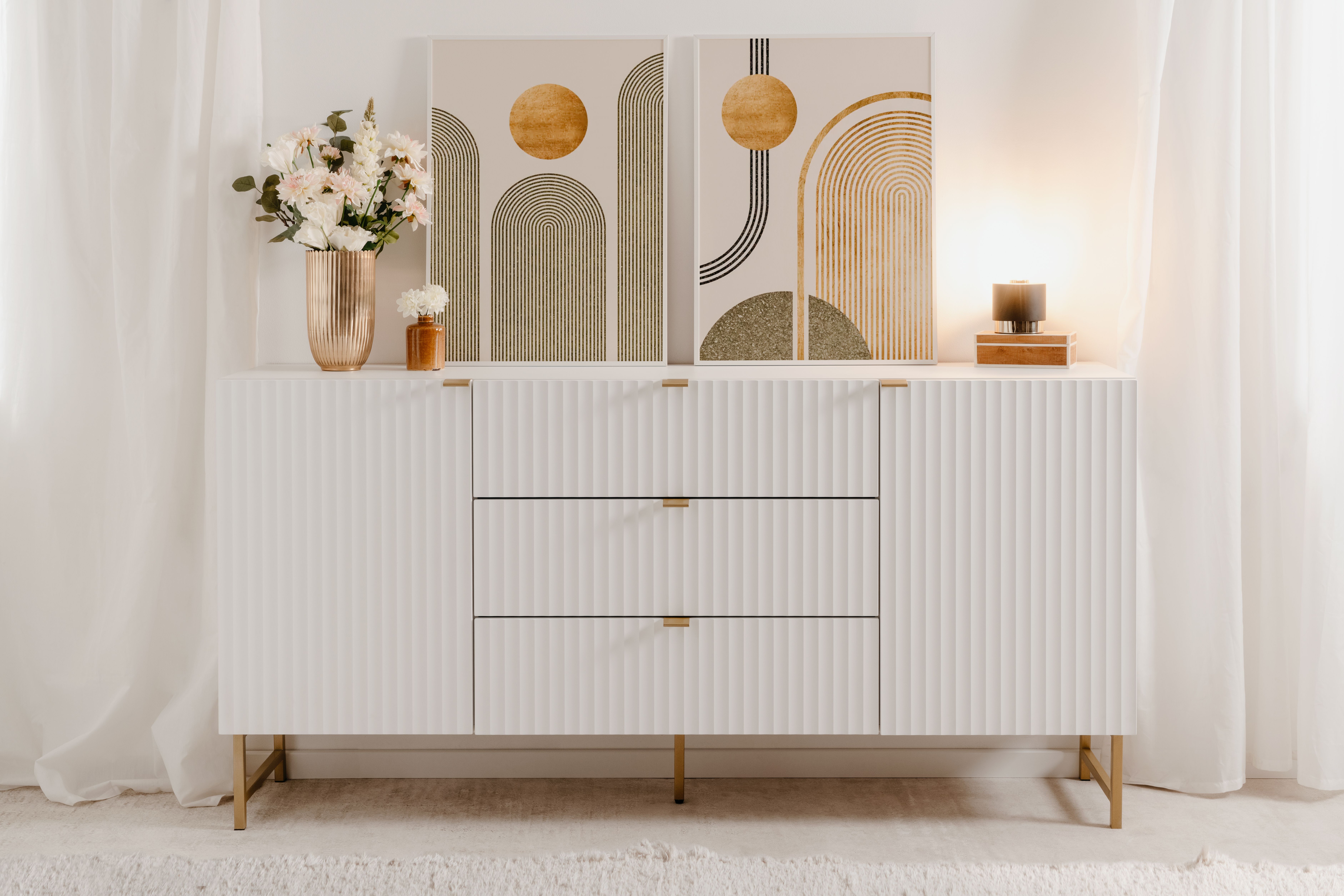 Piètement et poignées : métal ton doré mat