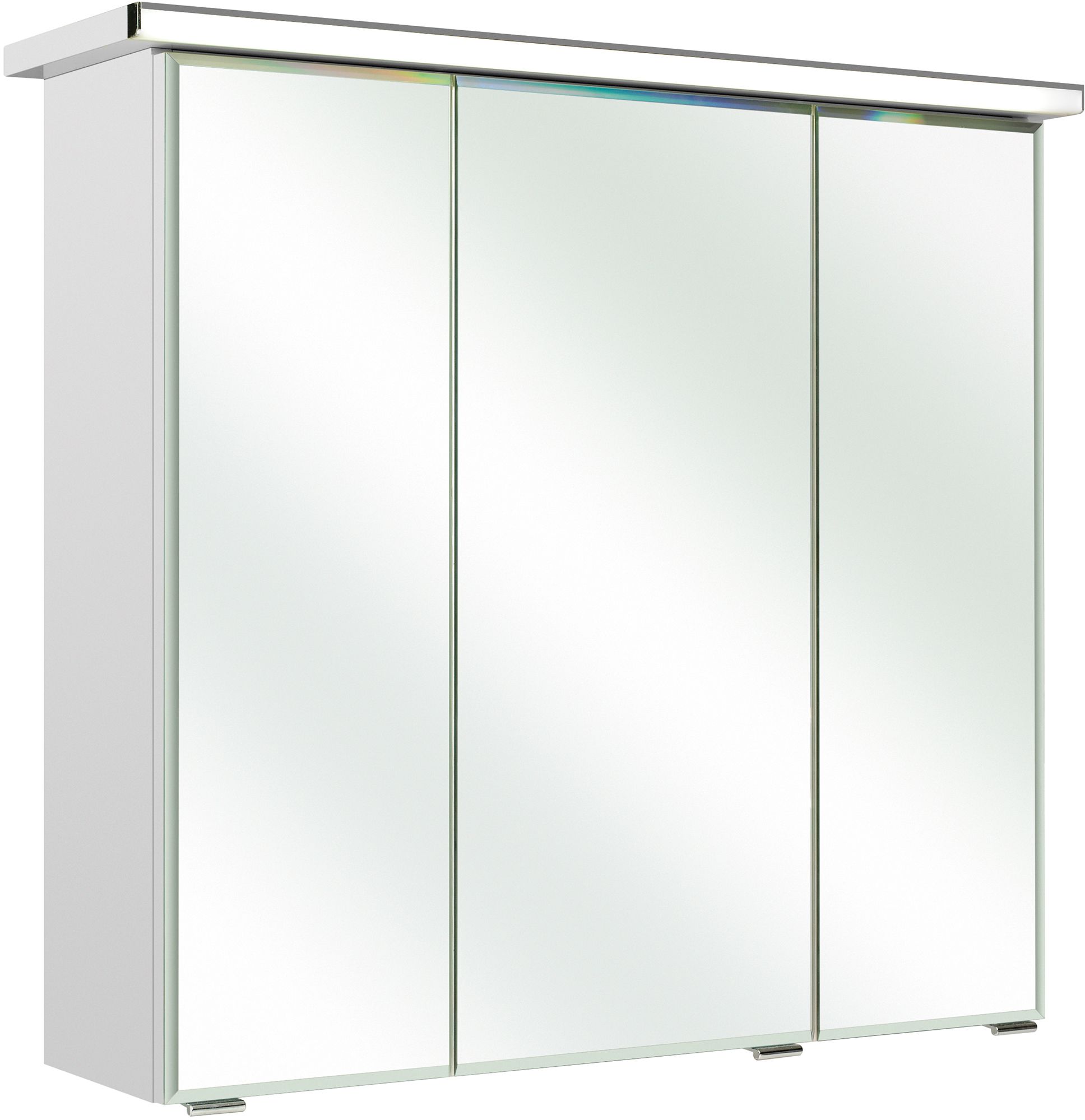 1 armoire de toilette avec 3 portes miroirs, 6 tablettes amovibles en verre, inclus : éclairage LED dans la corniche, avec interrupteur / prise électrique