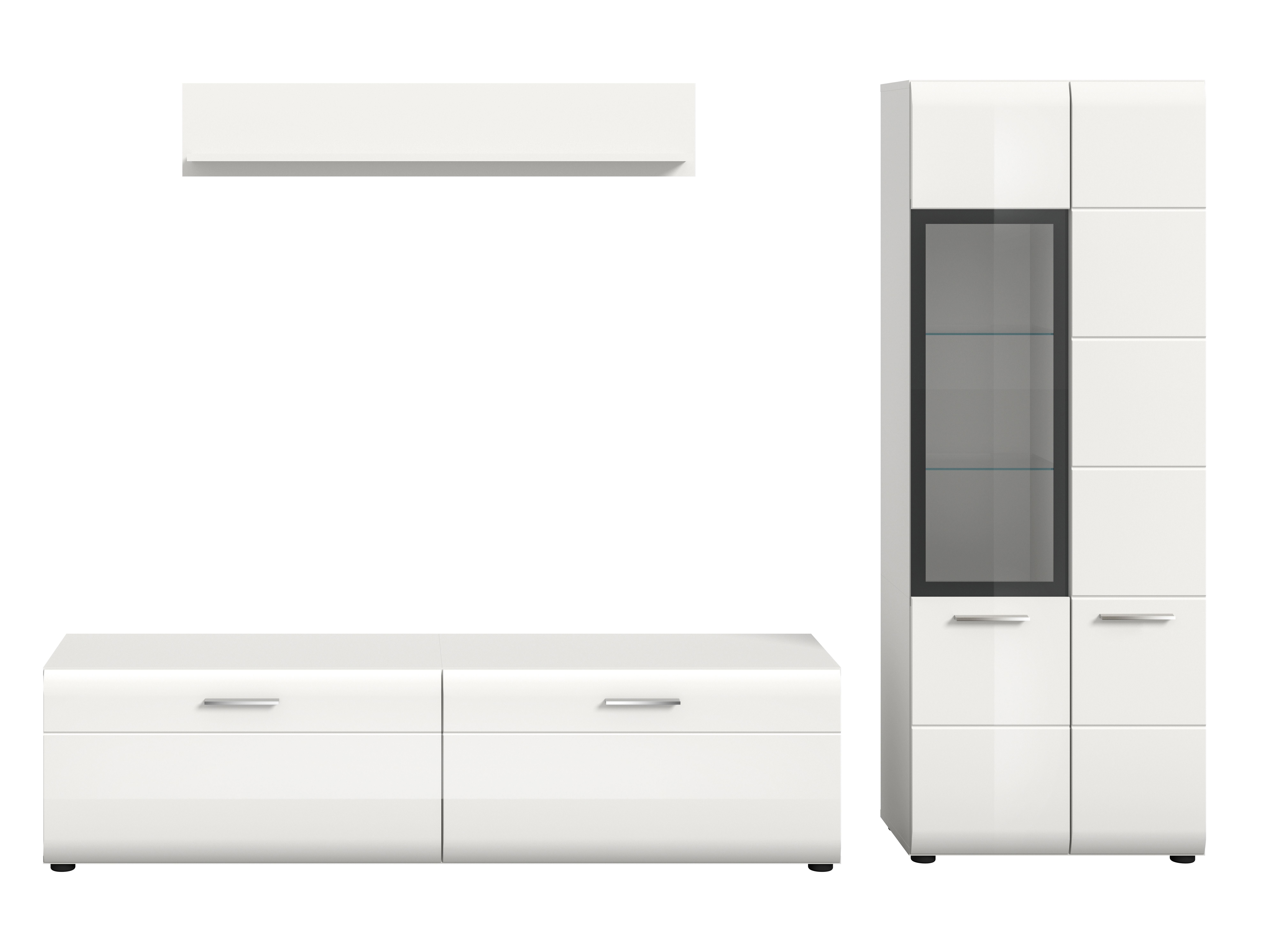 - Ensemble de salon 3 pièces, composé de : 1 vitrine, 1 meuble bas, 1 étagère murale