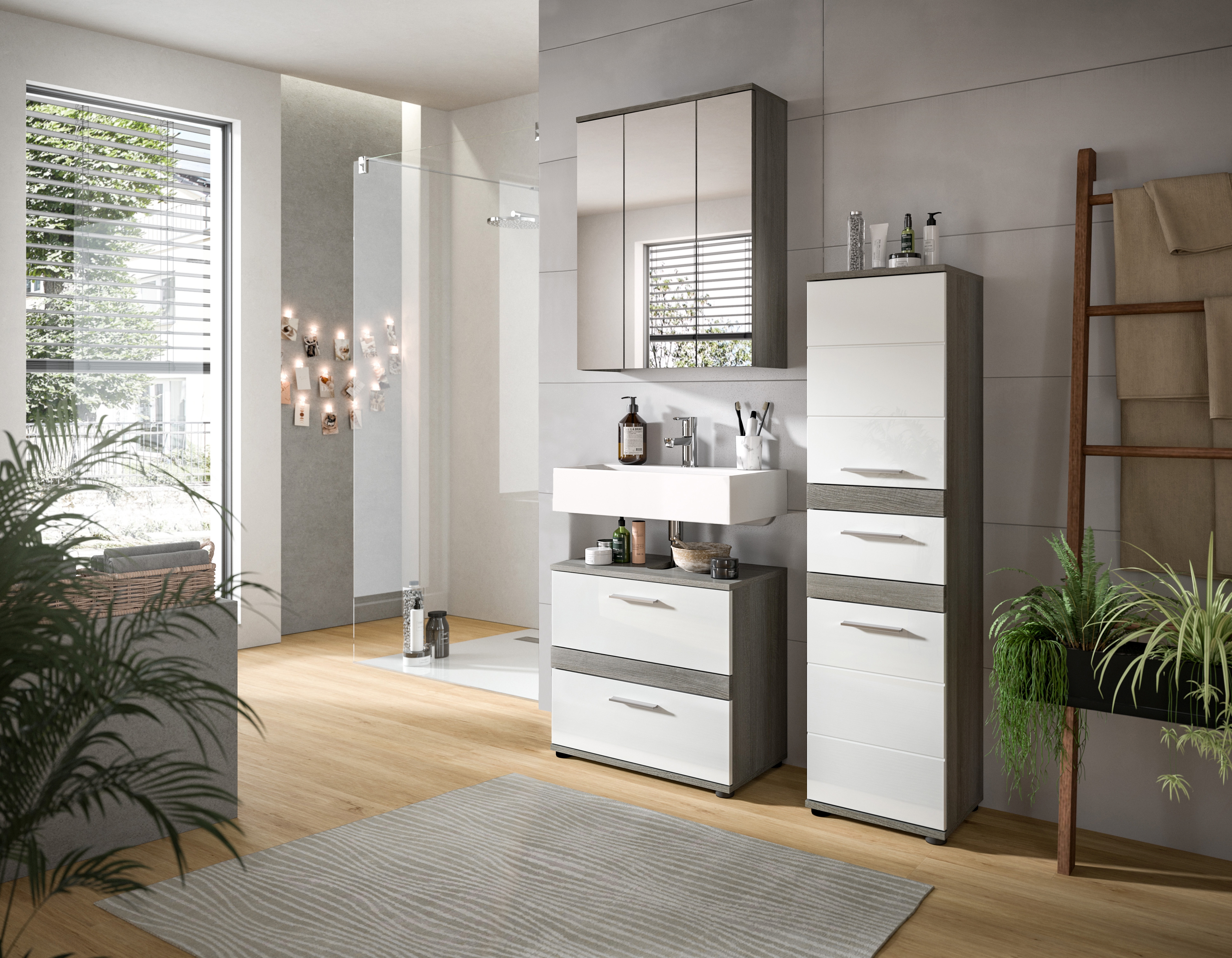 - Design/style : ensemble pour salle de bains tendance dans un contraste stylé décor bois argent fumé et ton blanc ultra brillant pour une note élégante et moderne dans votre intérieur.