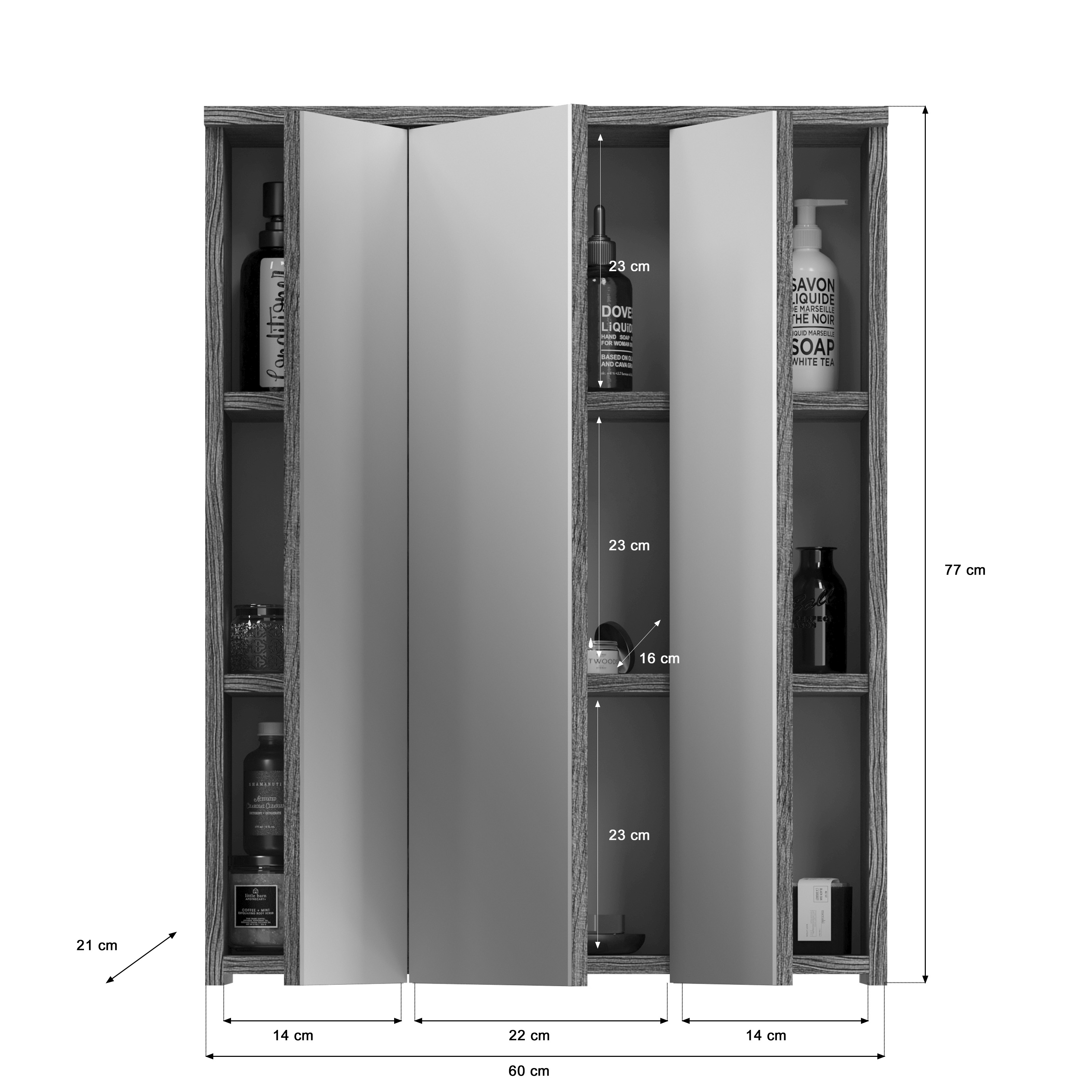 1 armoire de toilette avec 3 portes miroir et 6 tablettes amovibles
