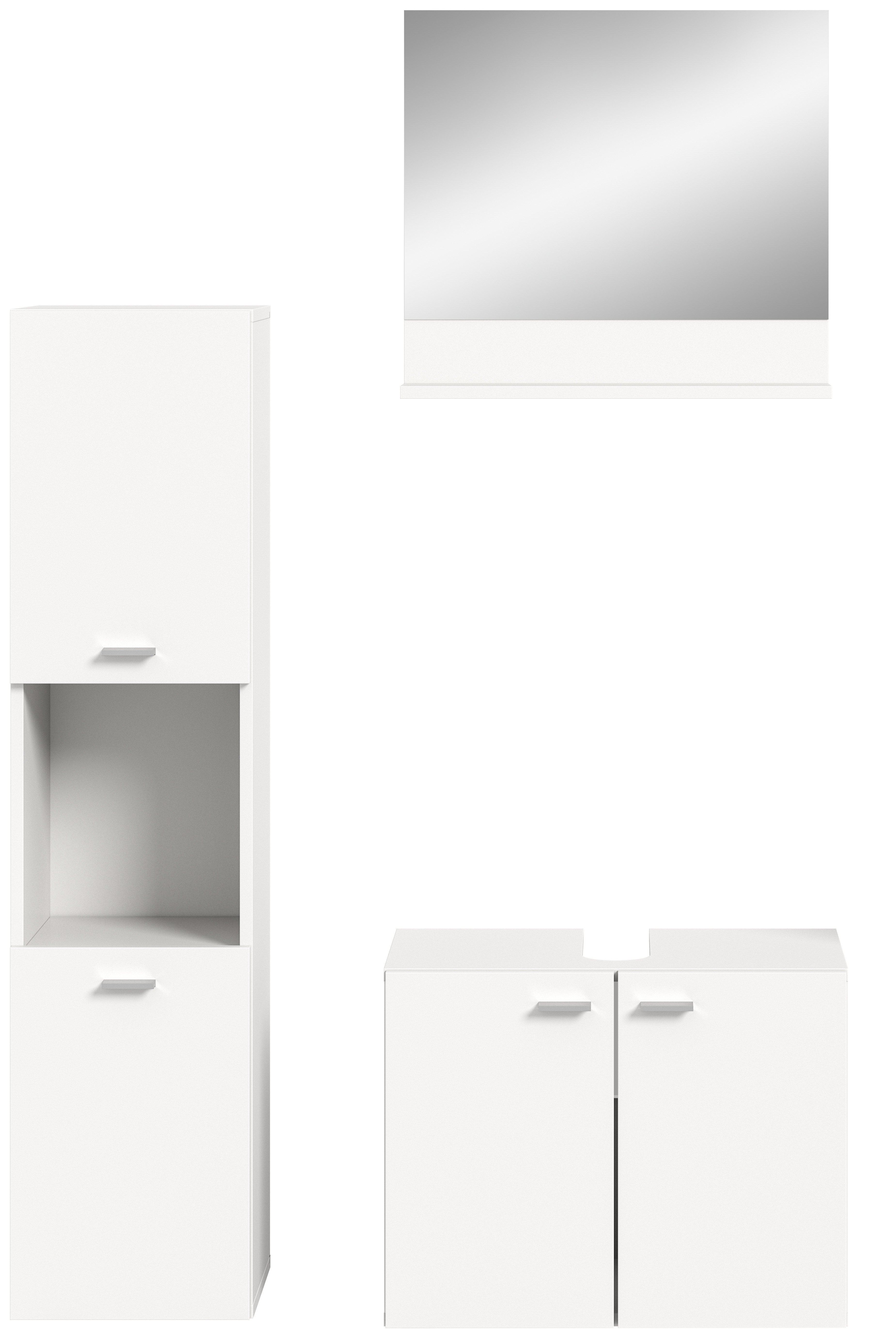 - Fonctionnalité : vaste espace de rangement avec différentes armoires et divers casiers pour le stockage organisé des accessoires de bain, serviettes et produits de soins ; cet ensemble permet également d’aménager joliment la salle de bains.