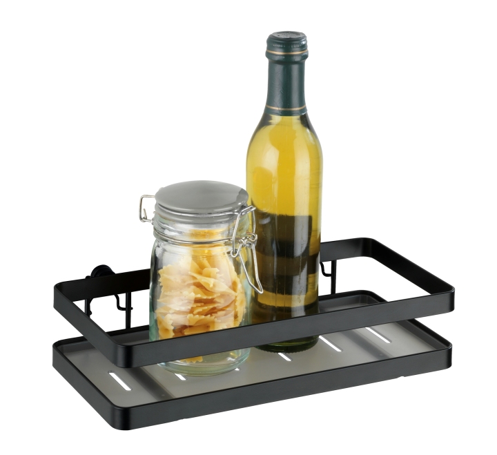 La série Gala transformera votre cuisine en oasis de bien-être ! Les accessoires de qualité sont fabriqués en acier plat avec finition époxy ton noir. Le charme du style industriel n'est pas seulement réservé aux lofts et prendra ainsi place dans la cuisine. Dans l'étagère à épices Gala, vous pourrez ranger toutes les épices dont vous avez besoin pour cuisiner. L'étagère avec tablette (22 x 6,8 x 5 cm) en plastique gris offre un bel espace pour ranger jusqu'à 4 pots à épices du commerce. Bien sûr, les autres pots et ustensiles de cuisine trouveront également un espace de rangement attrayant à portée de main. L'étagère de cuisine est donc un accessoire utile dans toutes les cuisines. La livraison comprend les vis et chevilles pour le montage au mur. Vous préférez une fixation sans perçage ? Aucun problème ! WENKO vous propose également une autre possibilité de fixation sans perçage. Vous trouverez donc sur notre site les adaptateurs adéquats : adaptateurs Turbo-Loc® ton noir (n° art. 501510)
