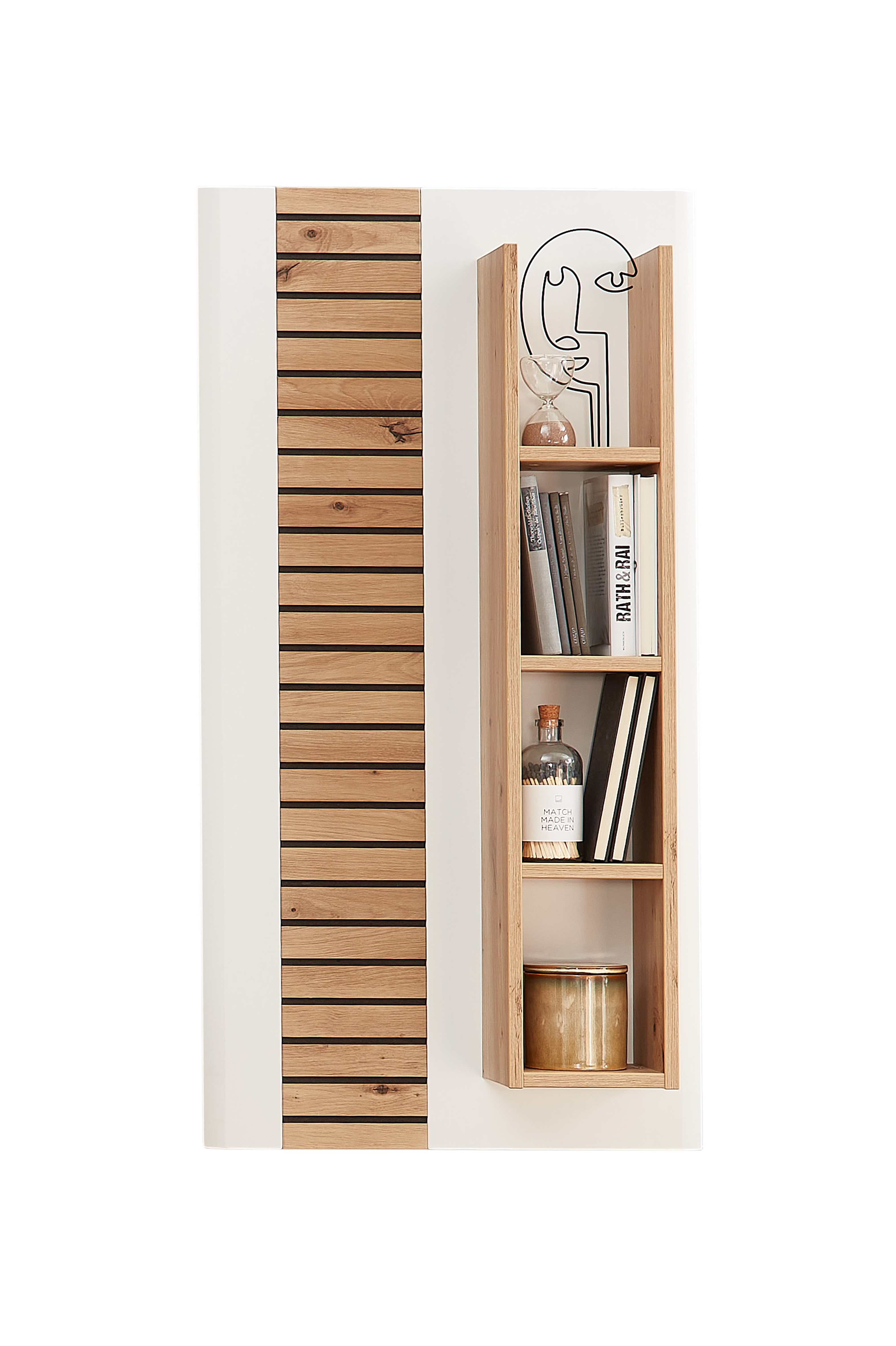 MDF (panneau de fibres de bois de densité moyenne) ton blanc mat et contrastes MDF décor chêne Artisan