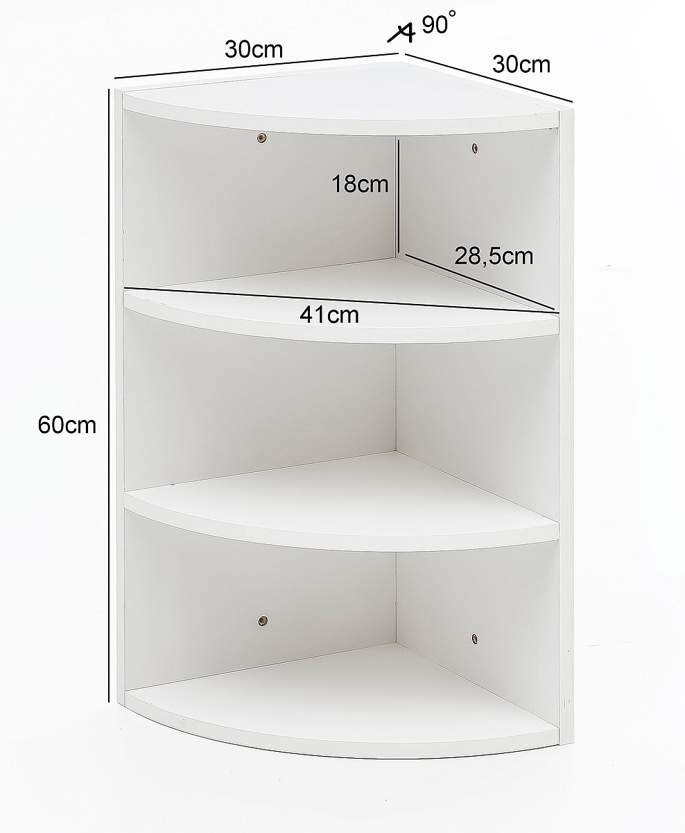 - Étagère d’angle complète : panneau de particules (mélaminé, laqué)