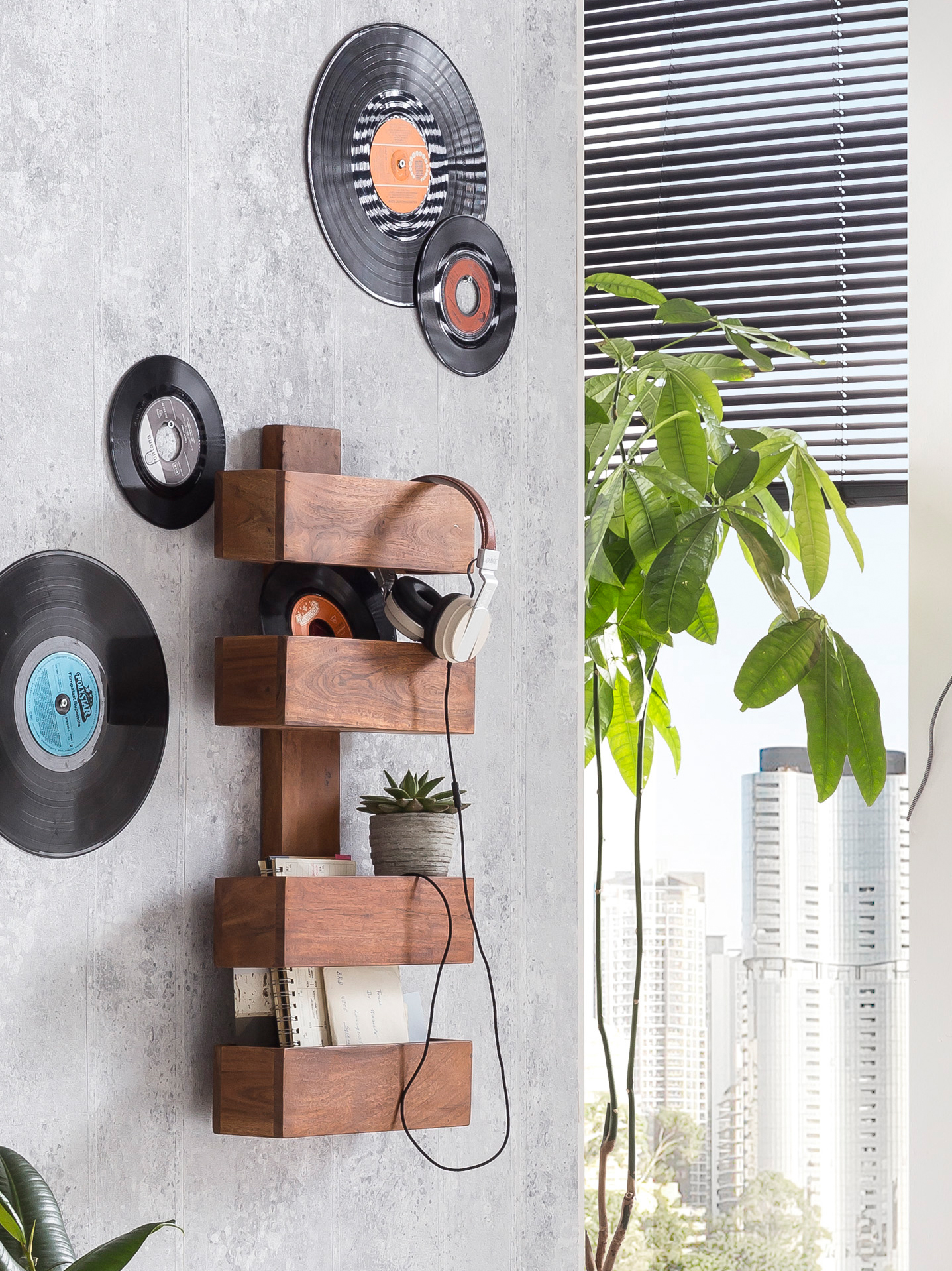 Avec cette étagère murale, vous pourrez présenter vos objets préférés de façon stylée et conférer à vos murs une note toute particulière. Le cadre est en bois d'acacia. Cette essence de bois n'est pas seulement élégante : elle est aussi robuste et stable. Grâce aux quatre compartiments, vous pourrez ranger ce que vous ne voulez pas voir traîner. Vous pourrez par exemple aussi accrocher l'étagère dans la cuisine pour y ranger vos épices. Ils seront ainsi à portée de main sans encombrer vos armoires. Peu importe où vous placerez l'étagère murale : elle mettra votre pièce joliment en valeur.