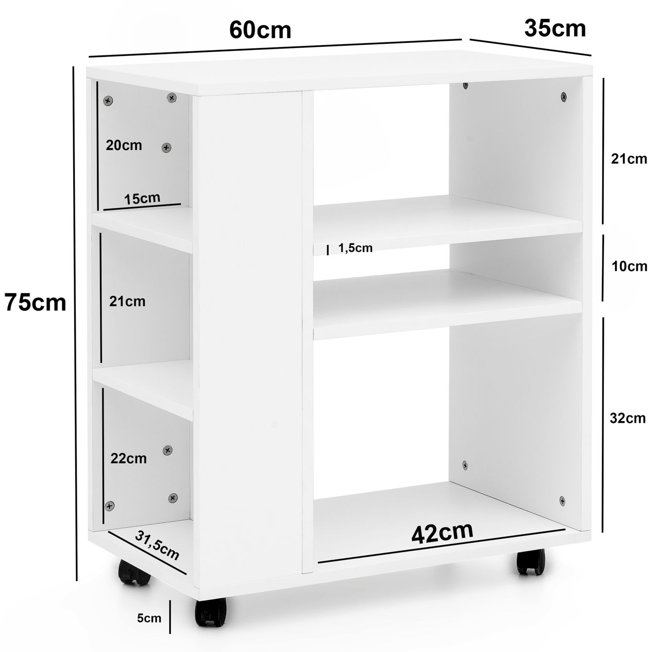 - ASSISTANT MOBILE ✔ Les étagères sont présentes dans chaque logement, mais elles sont rarement aussi mobiles que notre petite bibliothèque. Grâce à ses roulettes, il est possible de la déplacer là où vous en avez besoin pour l'utiliser comme vous le souhaitez. Au bureau en guise de caisson à roulettes, dans le salon comme table d'appoint ou comme bout de canapé, voire à côté du lit comme table de chevet : l'étagère vous accompagne dans chaque déménagement.