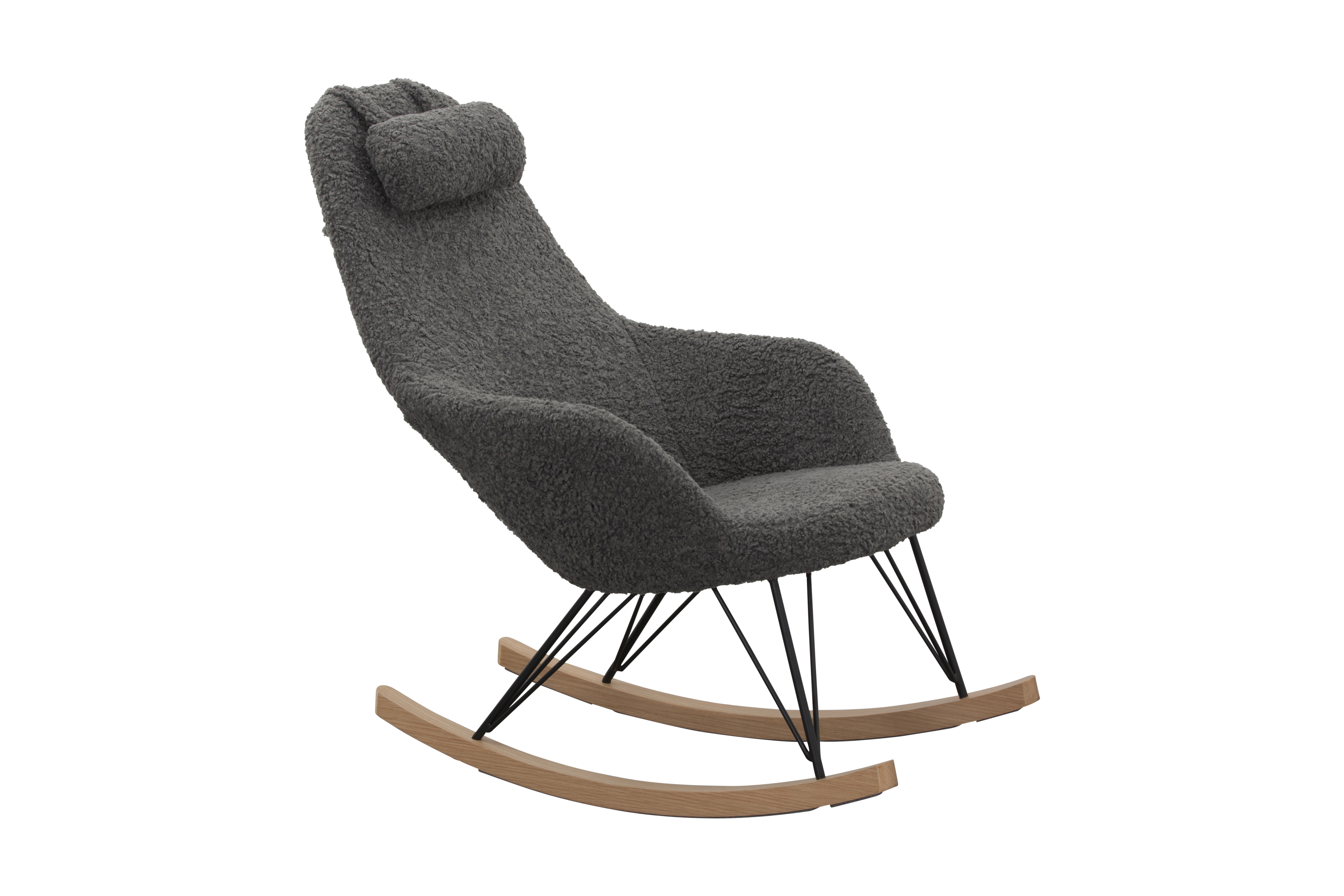 Le mobilier aspect peluche est une tendance de décoration confortable qui a conquis les intérieurs des amateurs de design ! La chaise à bascule de style scandinave séduit par la douceur de son revêtement en peluche. Alors que la structure est en métal thermolaqué ton noir, les deux pieds en arceaux sont en bois massif plaqué chêne. Cette structure garantit non seulement une répartition uniforme du poids et un beau mouvement du fauteuil, mais elle s’harmonise aussi parfaitement avec le revêtement en tissu. Le rocking-chair se distingue par son aspect original, sa qualité et sa robustesse. Faites de ce fauteuil à bascule votre nouveau lieu de prédilection et profitez de son confort pendant que vous lisez ou regardez la télévision.