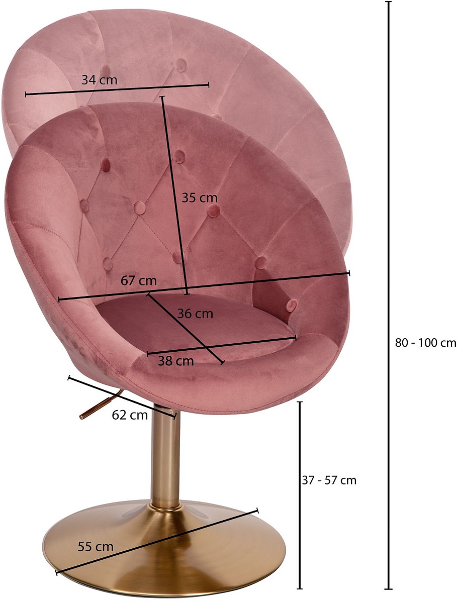 DIMENSIONS  ✔ Largeur : 67 cm // Hauteur : 80 - 100 cm // Profondeur : 62 cm // Surface d'assise (LxP) : 38 x 36 cm // Hauteur d'assise : 37 - 57 cm //Dimensions piètement tulipe : 55 cm // Hauteur dossier : 35 cm // Poids maxi : 120 kg