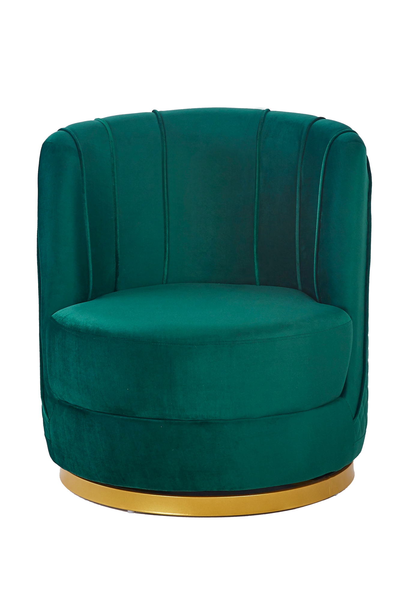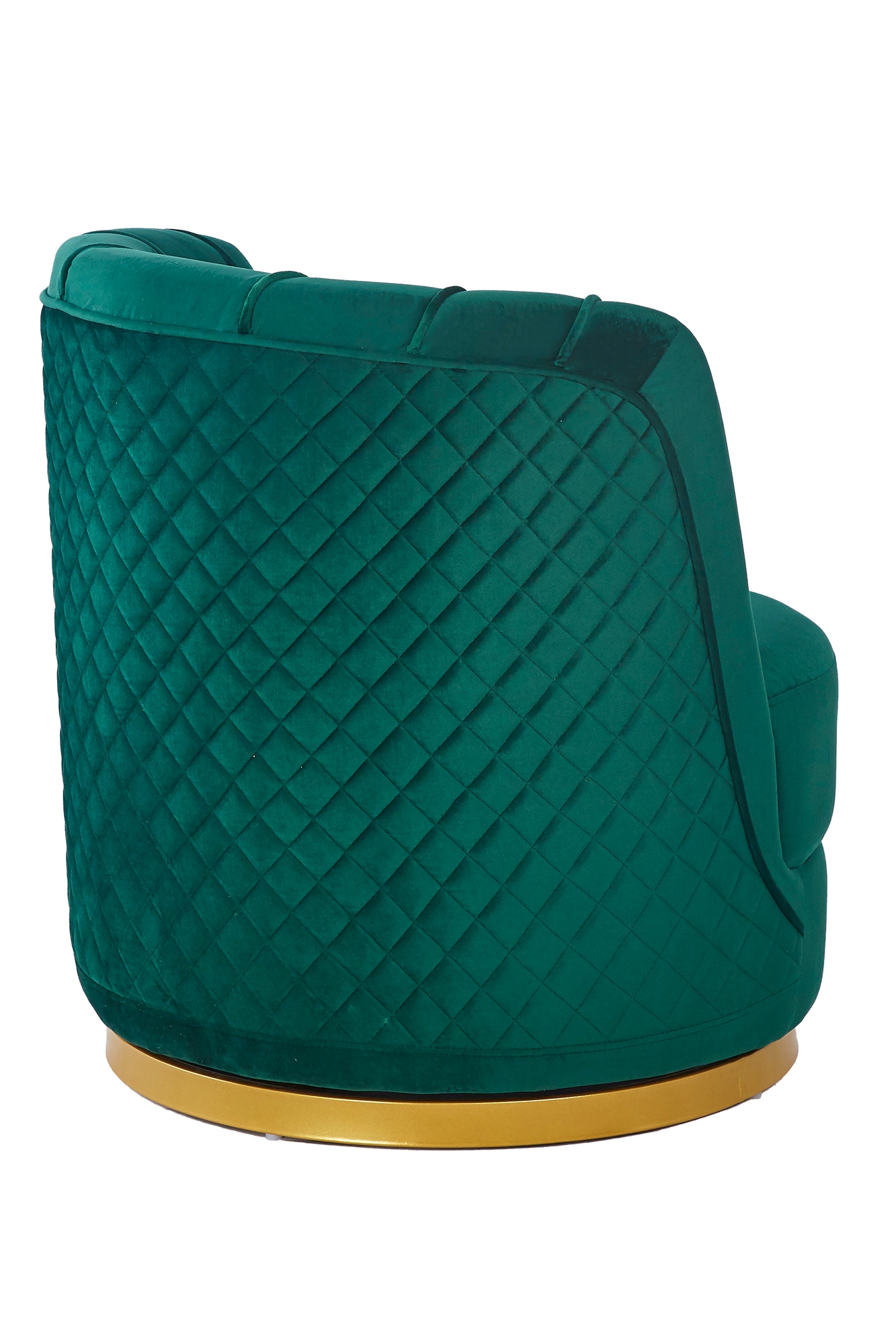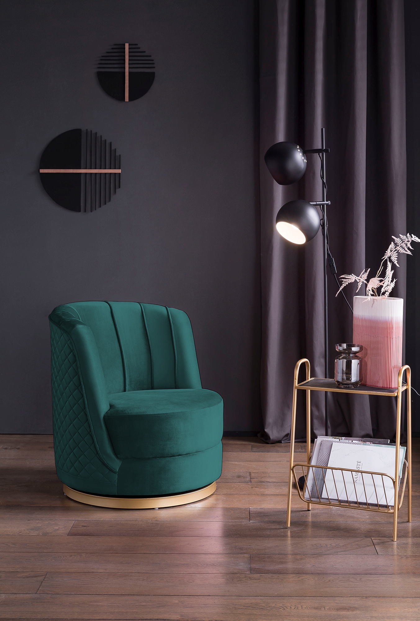 Fauteuil pivotant original dans un design tendance - le fauteuil avec surpiqûres en forme de losanges dans le dos et socle en métal doré avec fonction pivotante attirera tous les regards dans votre salon. Le revêtement en velours brillant avec surpiqûres verticales dans le dossier apporte la touche finale très glamour à ce fauteuil. Le coussin d’assise au rembourrage moelleux garantit un confort optimal. Pour le coin lecture, le bureau ou la coiffeuse : le fauteuil pivotant à 360° est le compagnon design idéal pour votre intérieur. Ce fauteuil est disponible dans 5 teintes élégantes.