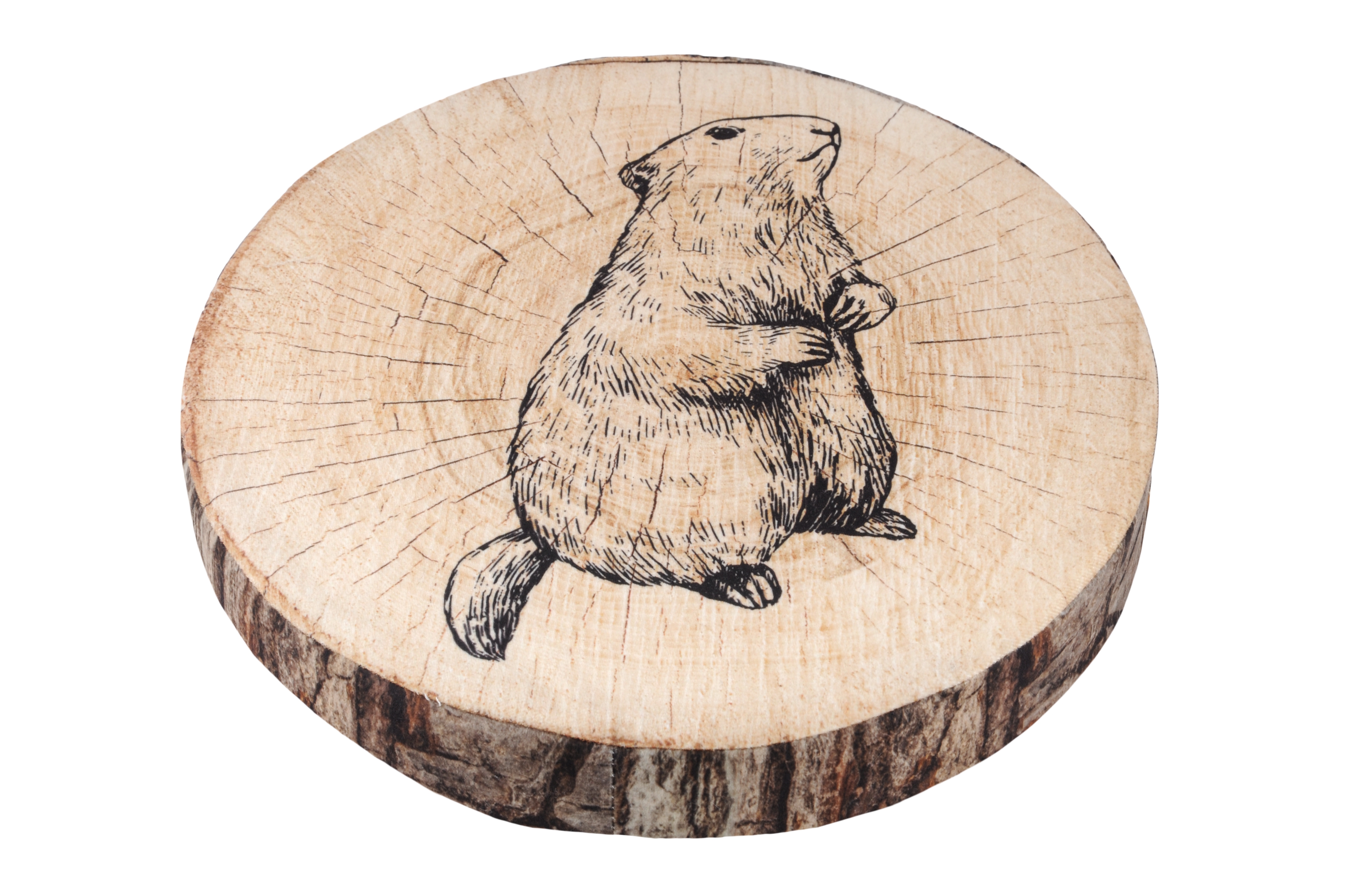 Coloris : beige, marron avec 2 motifs : faces avant et arrière avec impressions cerf et marmotte