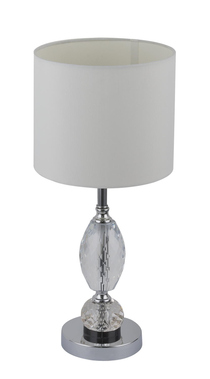 La lampe de table élégante et originale de 34 cm de hauteur marque des points par un design intemporel et des matériaux de qualité. L’abat-jour rond en textile blanc (Ø15cm), fixé sur un superbe pied en métal chromé et cristal transparent, est un grand classique parmi les lampes de table.