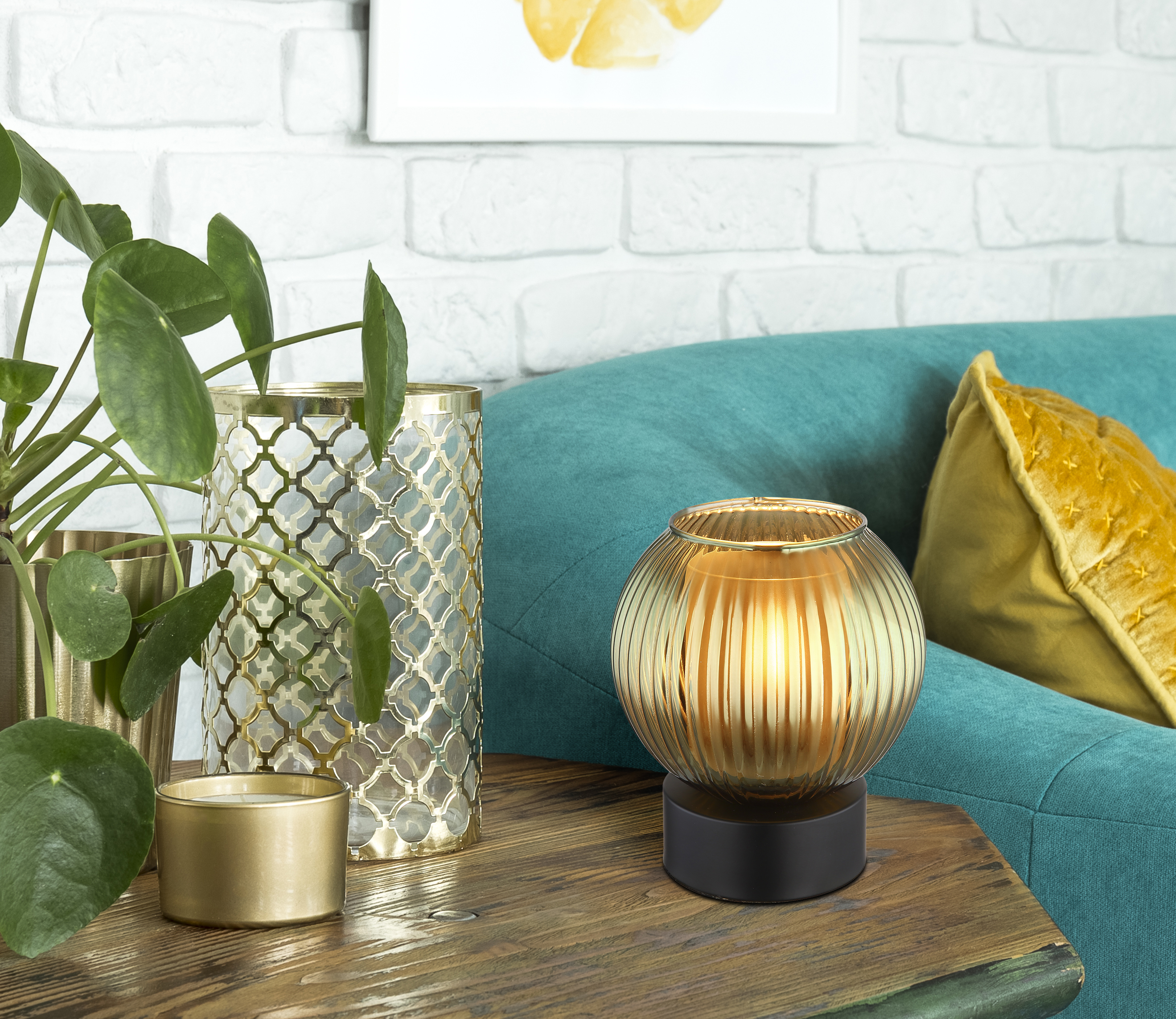 La lampe de table ronde équipée d’un abat-jour boule en verre rainuré est un luminaire stylé et moderne pour votre intérieur.