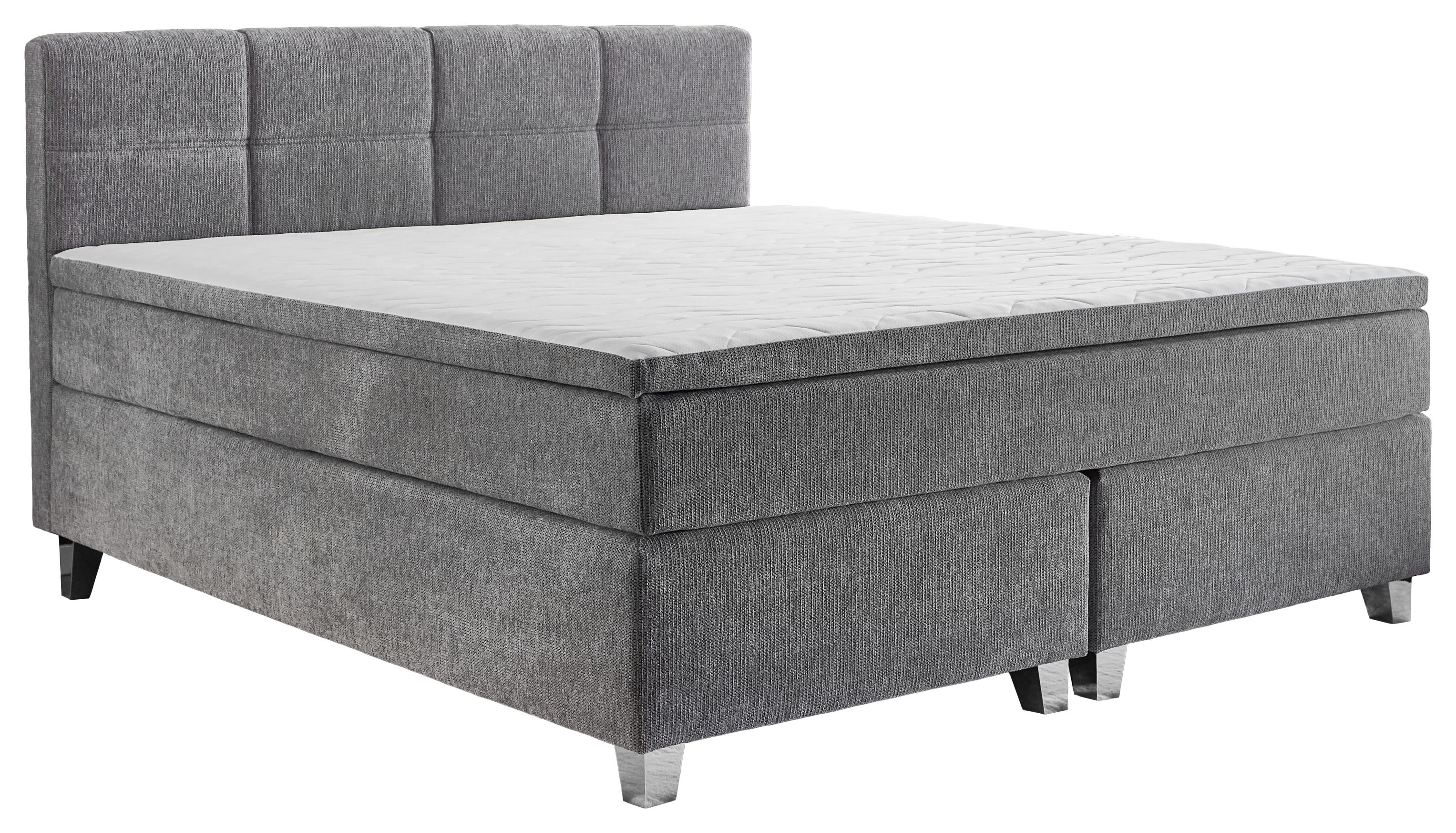 Ce lit boxspring en tissu argente 50530-720 allie un equipement bien pense a une fabrication solide et un confort de couchage agreable. La base se compose de deux sommiers boxspring avec ressorts Bonell et cadre en mousse confortable et stable. Le matelas a ressorts ensaches 7 zones offre un soutien ponctuel, tandis que le surmatelas integre en mousse PU confort, solidement cousu et reversible, apporte un confort supplementaire. La tete de lit et les cotes sont recouverts de tissu d'ameublement, l'arriere de non-tisse. Le lit offre une surface de couchage continue sans espace genant. Ideal pour les acheteurs soucieux de leur budget qui accordent de l'importance au confort, a la fonctionnalite et a un bon rapport qualite-prix - avec la garantie de prix MEGA.
