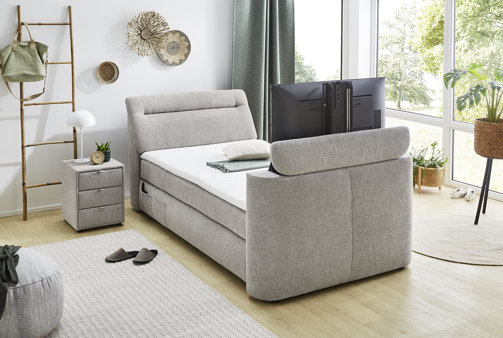 1 pied de lit avec support relevable pour le téléviseur et couvercle rabattable