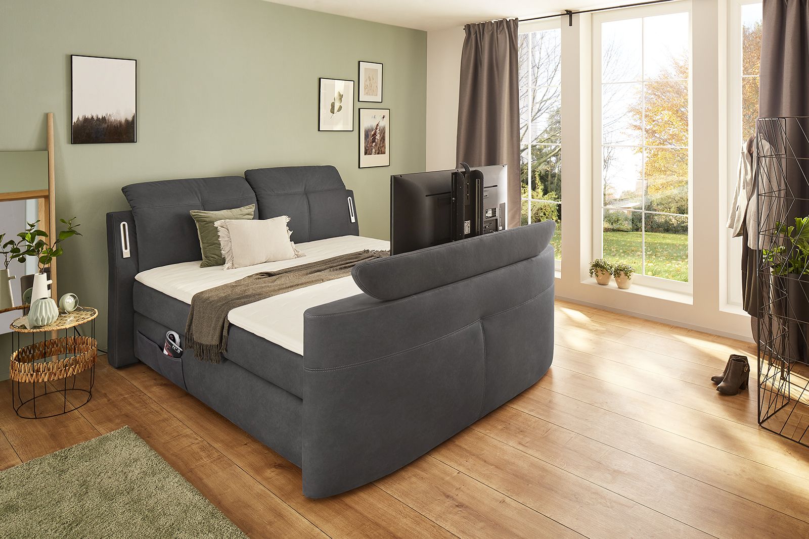 Le point fort de ce lit est la possibilité de fixer un téléviseur au niveau de la tête de lit pouvant être relevé ou rabaissé à l'aide d'une télécommande.