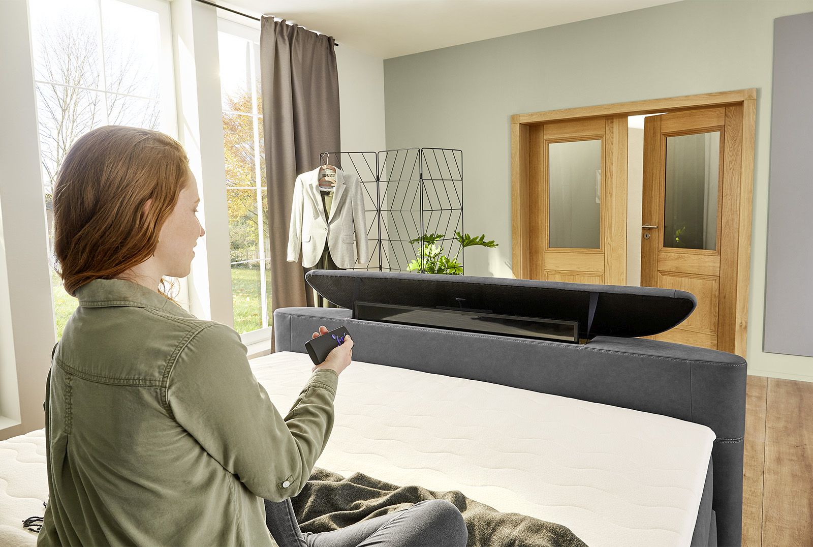 1 tête de lit avec montage TV possible, avec télécommande, rétractable