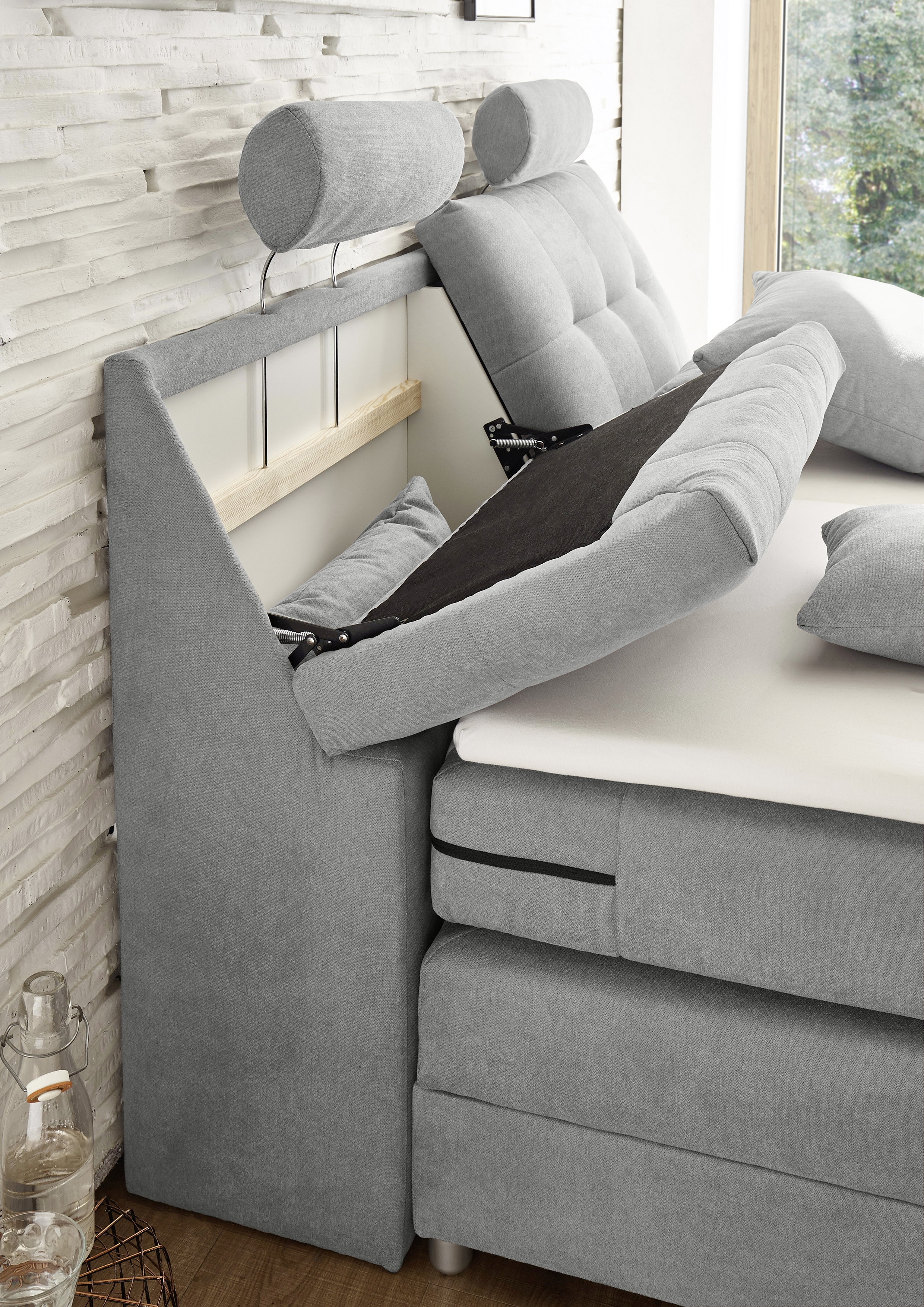 Caisson : structure stable de qualité en contreplaqué ; âme à ressorts ensachés tonneaux, 1 couche de mousse T25 d'env. 1 cm d'épaisseur